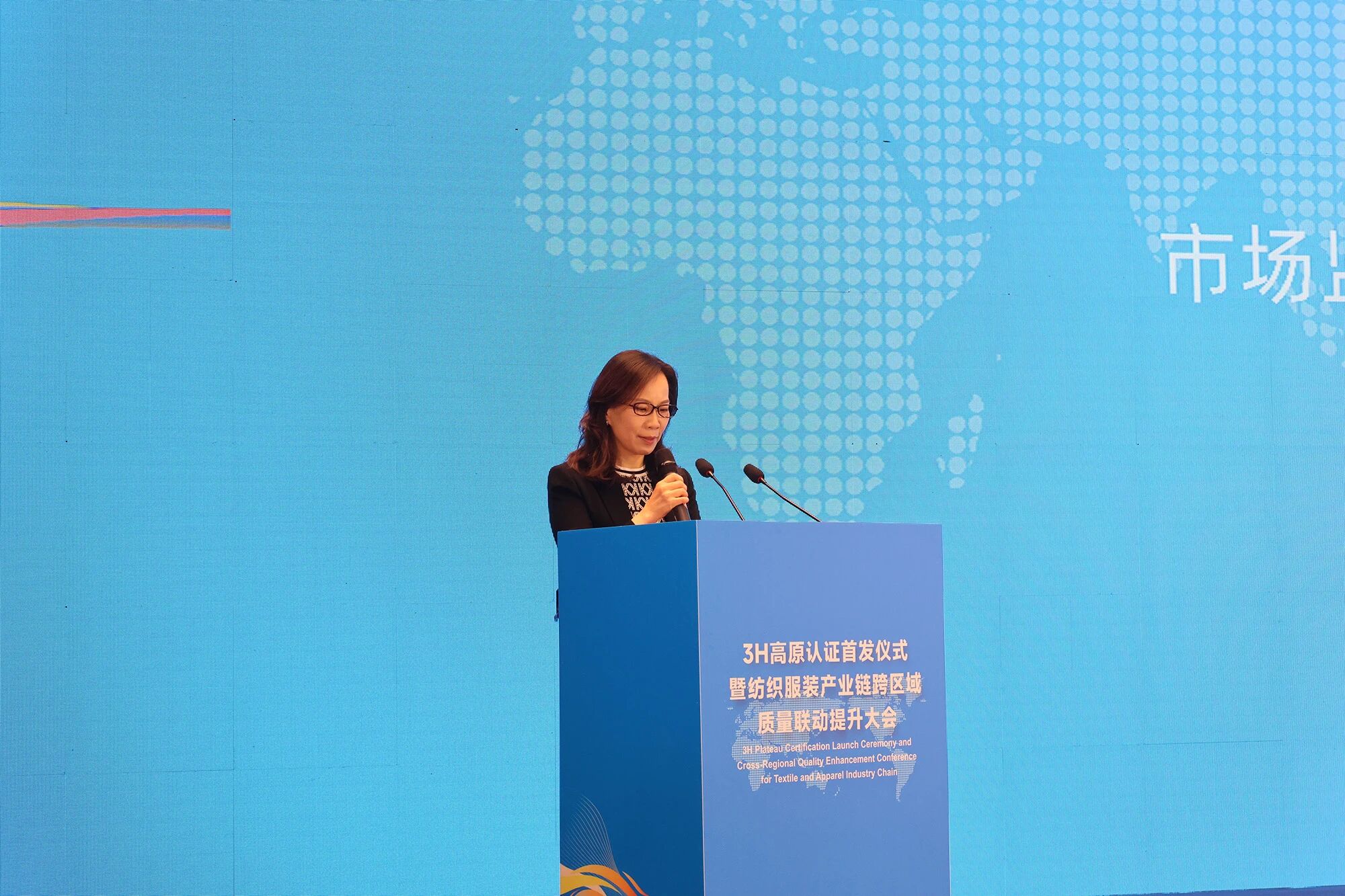 10月17日,由中国消费品质量安全促进会指导、青海省市场监督管理局主办、广州检验检测认证集团有限公司(简称“广检集团”)承办的“3H高原认证首发仪式暨纺织服装产业链跨区域质量联动提升大会”在青海省西宁市举行。来自国家市场监督管理总局认证监管司、国家市场监督管理总局质量发展局、青海省人民政府、青海省各有关委办厅局、青海省市场监督管理局、浙江省市场监督管理局等政府部门的有关领导及近百家产业链龙头企业、科研机构、行业协会代表共同参与盛会。