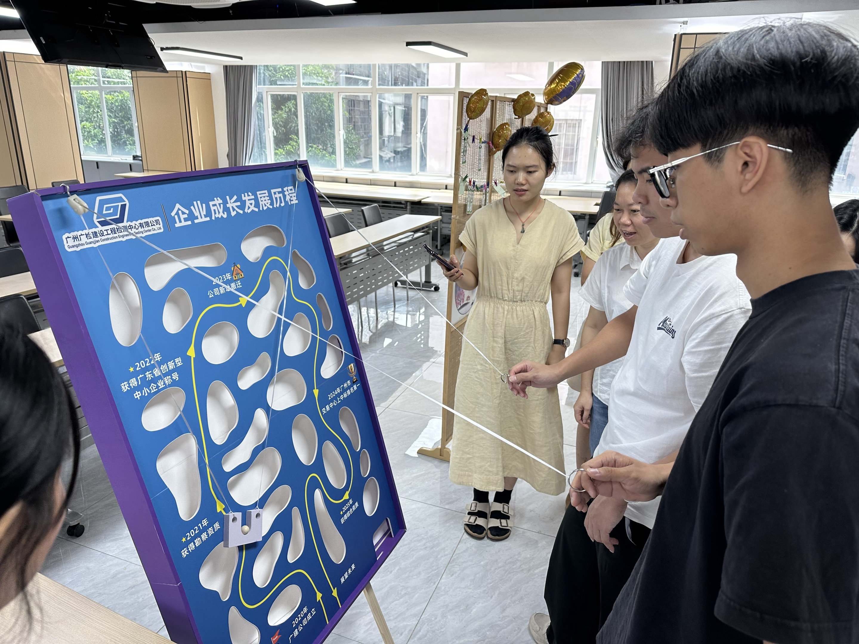 “‌步步为赢”‌迷宫滚珠比赛的道具巧妙融入公司发展历程,参赛人员也能通过活动加深对公司文化的了解。