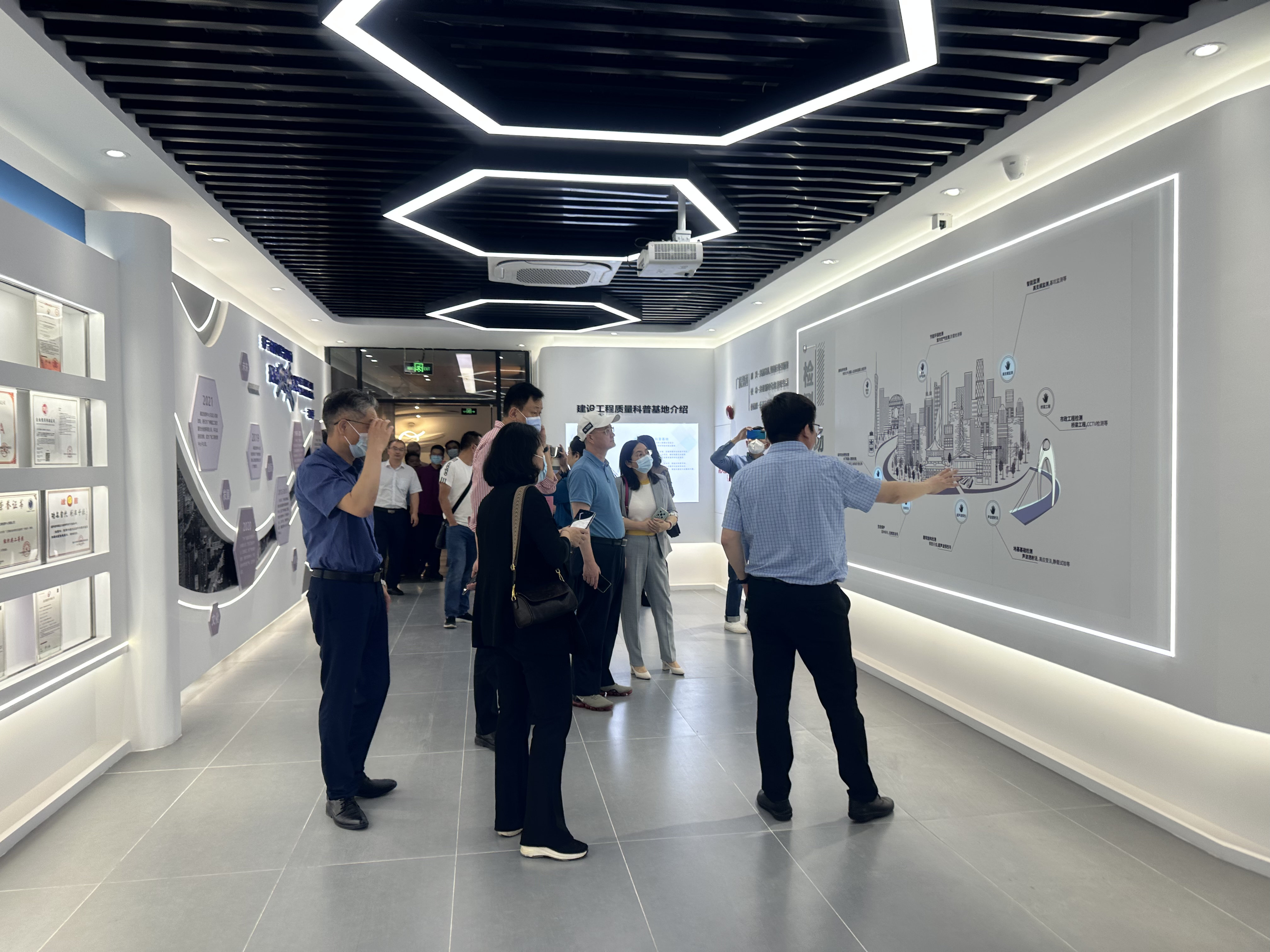 2016 年12月,我司 “建设工程质量科普基地”被认定为“广州市科学技术普及基地”。近十年来,基地始终锚定“智能检测+质量安全”的核心方向,围绕绿色、智能、数字化检测理念不断升级迭代,现已成长为集“看科技、学知识、玩互动、享服务”于一体的综合性科普平台。工程检测这一“藏在工地里的专业技术”,在这里被转化为大众喜闻乐见的“科普大餐”。