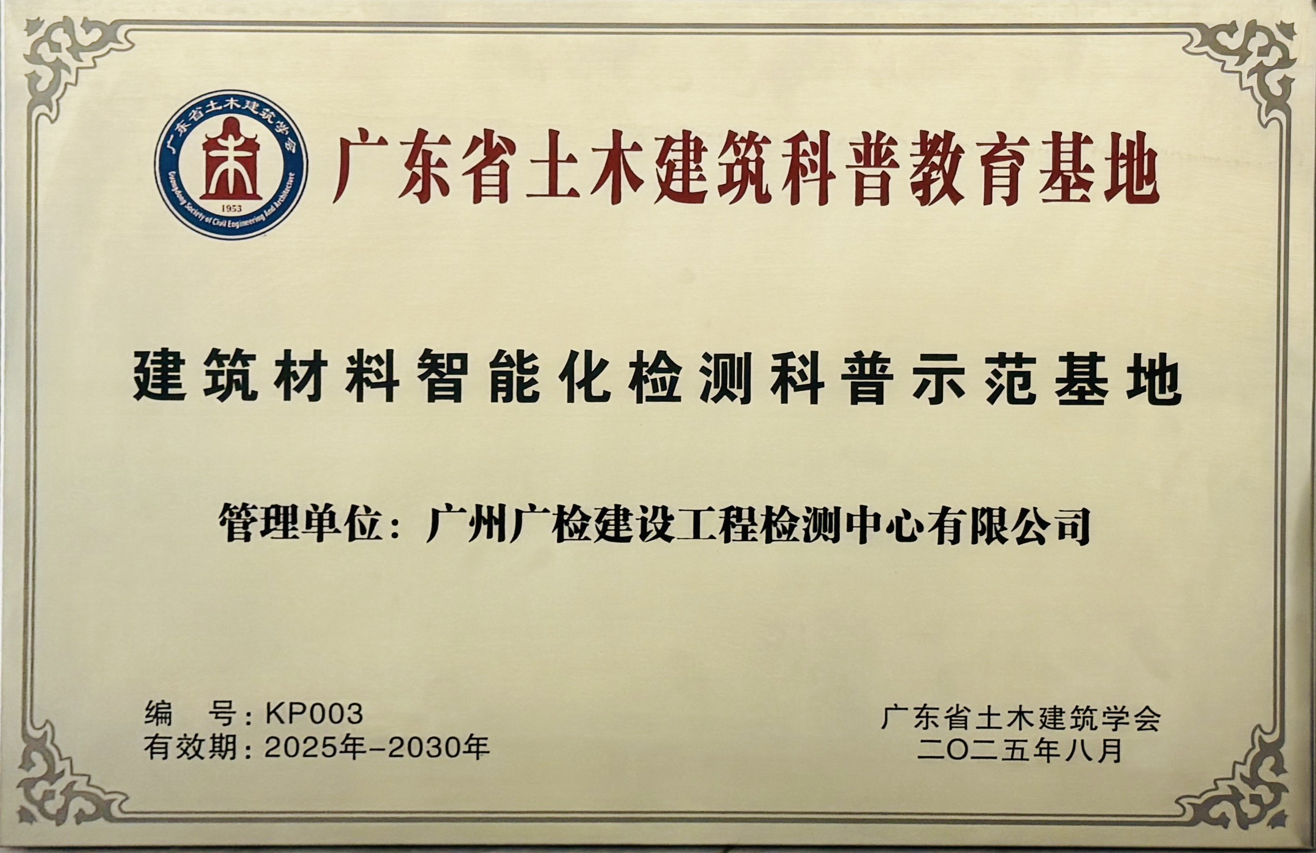日前,2025 年度广东省土木建筑科普教育基地授牌及座谈会顺利召开。会议由学会秘书长梁伟雄主持,学会理事长徐天平、副秘书长柯梅丽及各科普教育基地项目代表出席。广检工程检测中心“建筑材料智能化检测科普示范基地”成功获评“广东省土木建筑科普教育基地”,继往开来再添新荣誉,迈出高质量发展的坚实一步。