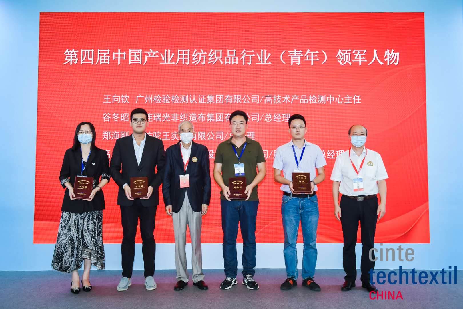 9月2日,“2020年中国国际产业用纺织品及非织造布展览会(Cinte)”在上海新国际博览中心举行。同期,中国产业用纺织品行业协会组织的“第四届中国产业用纺织品行业领军人物”评选活动进行了颁奖仪式。广检集团高技术产品检测中心主任王向钦博士荣获“第四届中国产业用纺织品行业(青年)领军人物”的称号。