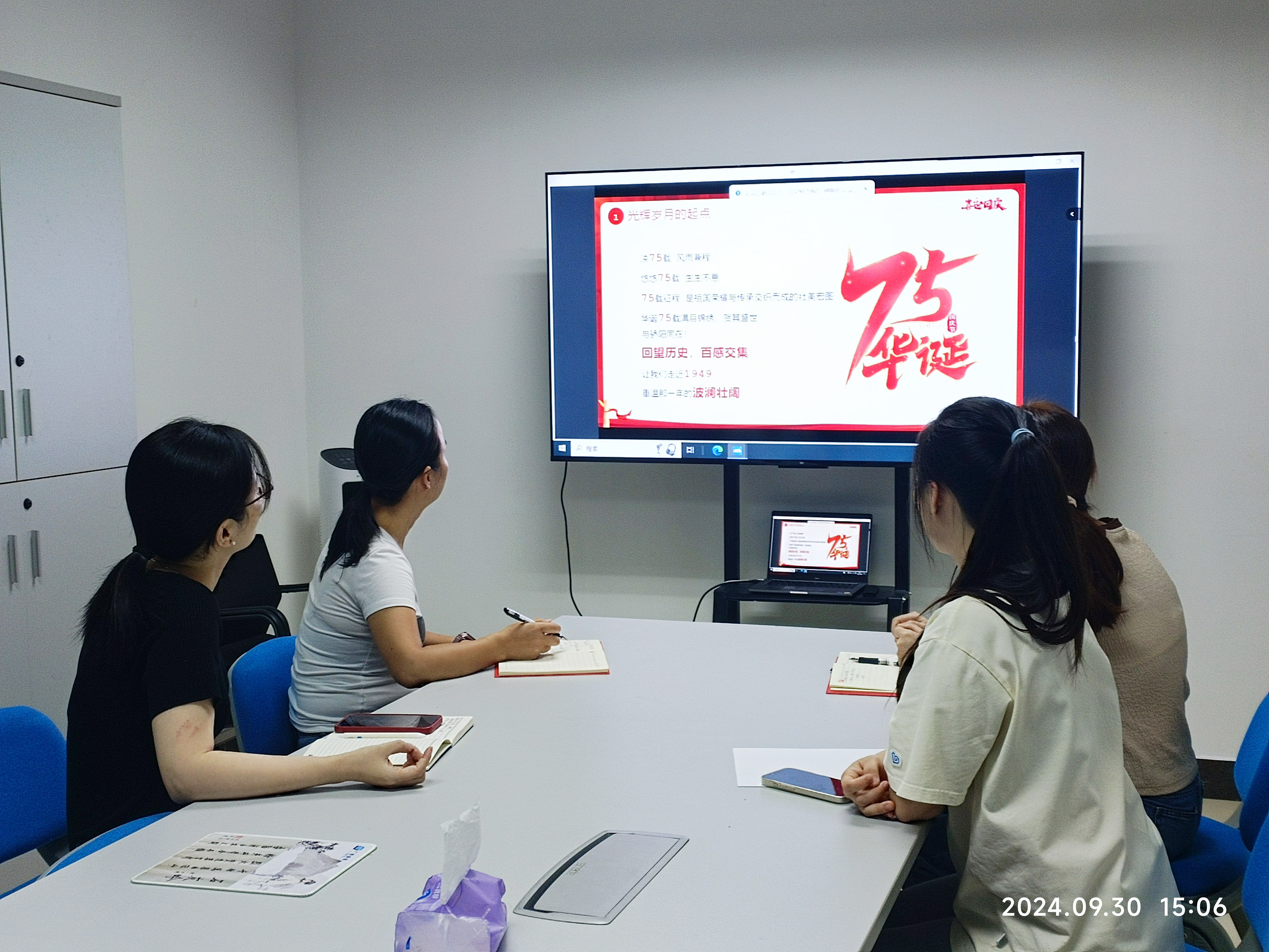 最后,支部书记吴小孟同志进行总结讲话。她指出,中华人民共和国成立75年来,党团结带领全国各族人民不懈奋斗取得了伟大的历史性成就,经过75年的艰苦奋斗,中国式现代化已经展开壮美画卷并呈现出无比光明灿烂的前景。站在新的历史起点上,我们要更加团结、更加努力,在以习近平同志为核心的党中央坚强领导下,以逢山开路、遇水架桥的坚毅和勇气阔步向前,谱写中国式现代化的崭新篇章。