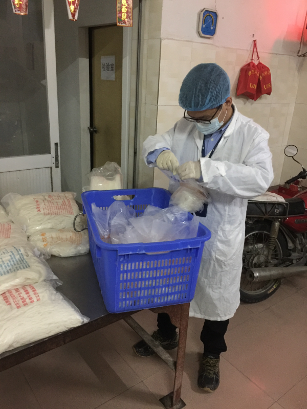 湿河粉、湿米粉的制造工艺和销售流程决定了它是一种以散装零售为主的短保质期产品,生产企业通常在凌晨生产,当天销售,保质期不超过24小时。为及时抽取样品进行检验,广检集团食品抽样人员连日来凌晨出击,披星戴月,在湿河粉、湿米粉出厂的第一时间即对其进行抽样封存,冷藏运输至实验室进行检验,用科学严谨的检验数据,为广大人民群众营造吃得放心的消费环境。