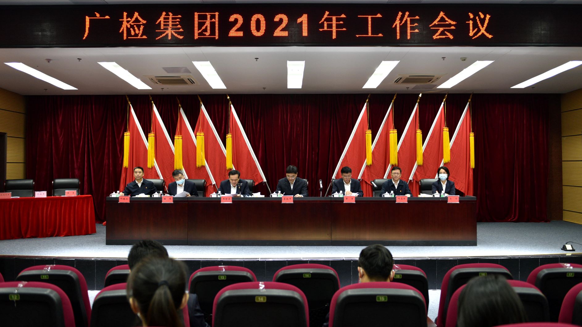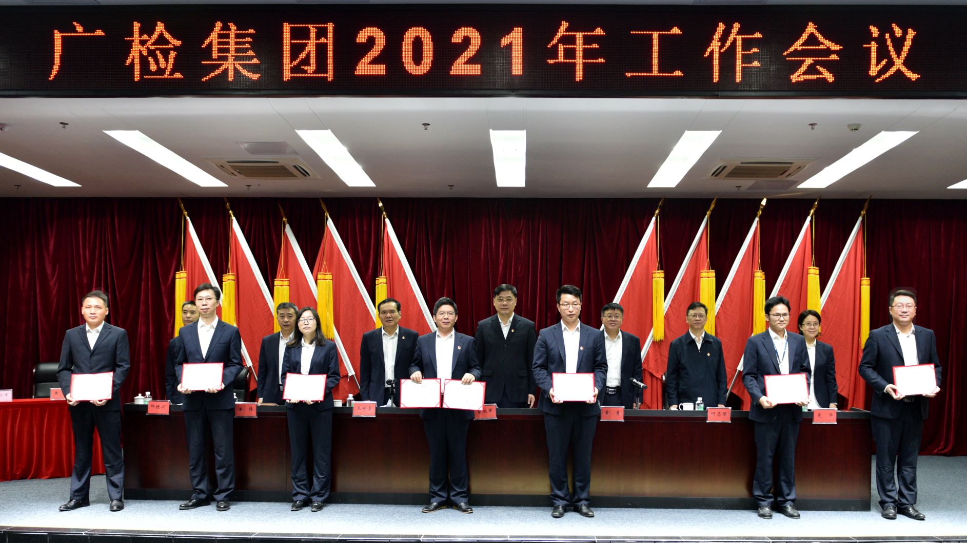 黄勇指出,2020年,广检集团坚持以习近平新时代中国特色社会主义思想为指导,坚决贯彻落实习近平总书记关于统筹推进新冠肺炎疫情防控和经济社会发展工作的重要讲话精神,切实履行国家赋予的检验检测和技术支持工作职责,多措并举持续加大资源投入防护用品检测服务领域,主动扛起守护全国口罩防护服质量安全责任,稳步推进检验检测认证业务整合改革工作,积极服务“六稳”“六保”,有效抵御新冠肺炎疫情对业务的冲击,逆流而上实现业务较快增长,全年业务增速达到47%,利润增速为96%,荣获“全国纺织行业防控新冠肺炎疫情先进单位”“广东无纺布行业抗击新冠肺炎疫情先进单位”称号,下属广纺事业部/公司获得“广州市抗击新冠肺炎疫情先进集体”和“广州市先进基层党组织”双荣誉称号。2021年,集团将深入贯彻党的十九届五中全会精神特别是习近平总书记重要讲话精神,充分认识国内外环境发生的深刻变化,坚定育先机开新局的信心和决心,科学谋划“十四五”时期集团各项事业发展路径,着力加强集团党的建设,着力推动整合改革工作,着力把握市场发展机遇,着力完善企业治理体系,着力培育风清气正氛围,奋力实现集团各项事业在“十四五”开好局、起好步,在新一年取得更大的突破。