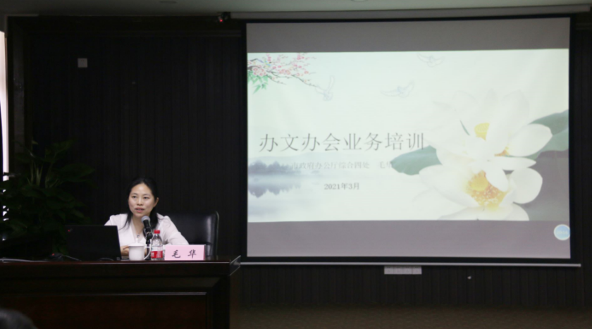 近日,广建公司特邀市政府办公厅综合四处二级调研员毛华莅临开展办文办会业务培训。公司领导、各部门副主管级及以上人员共40余人参加培训。