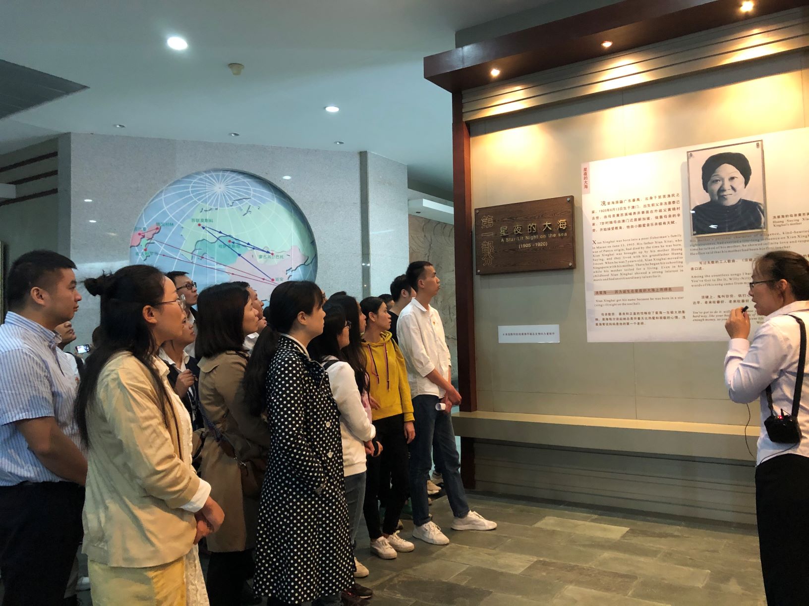 在宣讲员的带领下,全体党员参观了“星夜的大海”“为音乐艰苦奋斗”“为民族发出怒吼”“新音乐运动的旗帜”“魂系祖国”“时代的音乐巨人”六个展区,并通过触摸电子屏点播冼星海同志在不同时期创作的音乐作品,包括激动人心、动人心魄的《黄河大合唱》《在太行山上》《到敌人后方去》等,领略到了冼星海同志跌宕曲折的音乐人生和伟大的爱国事迹。