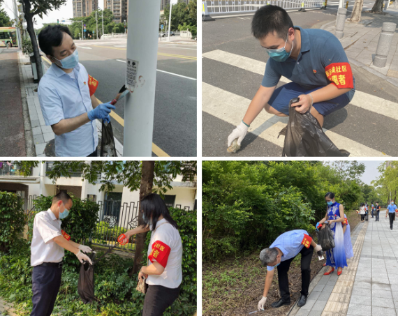 在石楼镇国学广场、亚运城社区等活动现场,处处活跃着广检集团党员们的劳动身影,他们佩戴党员徽章、手戴服务袖章、头顶炎炎烈日,组成清洁行动服务队,到街道扫落叶、到花坛捡纸屑、到灯杆铲广告,以身作则、带头示范,志愿参与社区清洁,主动维护环境卫生,共同营造干净、整洁、文明、舒心的生活环境,以文明举止为城市添彩,以文明形象为城市增光。