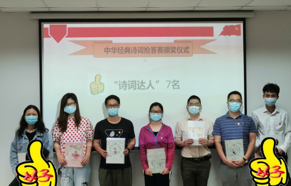 随后进行了经典诗词抢答比赛,抢答内容既有“三十功名尘与土,八千里路云和月”的爱国思乡主题,又有“会当凌绝顶,一览众山小”的大好河山主题,还有“江山如此多娇,引无数英雄竞折腰”的英雄赞歌。活动中党员同志们热情高涨、气氛热烈,参与抢答的党员们敏捷快速的反应赢得了阵阵掌声。通过激烈角逐,党支部七位同志获得了“诗词达人”称号。