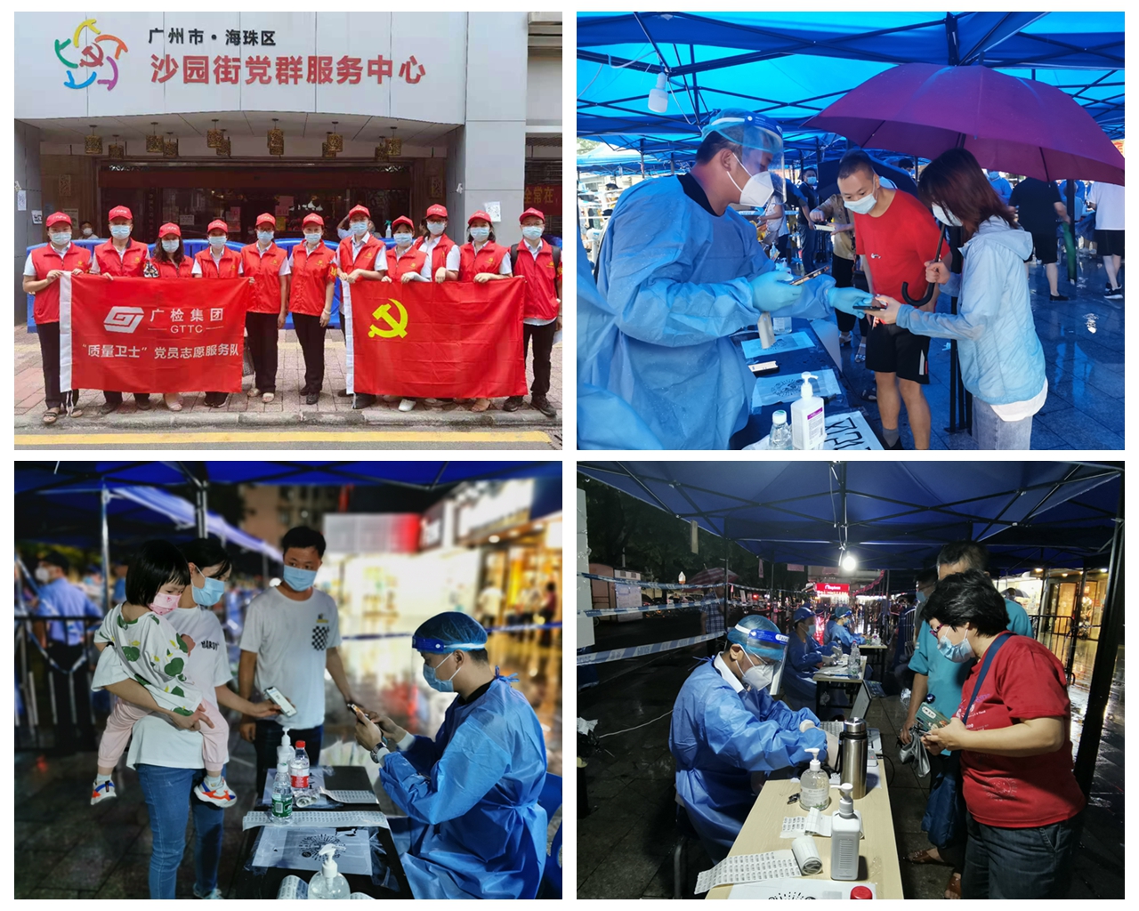 5月28日下午,广检集团党委迅速响应市委组织部、市国资委党委的号召,层层发动,半小时内从广检集团“质量卫士”党员志愿服务队中抽调了40名党员志愿者组建了1支疫情防控党员突击队和1支后备队,同步落实物资保障和加强党员突击队思想动员及安全教育,随时做好参与疫情防控志愿准备。5月30日晚九点,广检集团党委接到市国资委关于支援疫情防控的紧急任务,快速反应、马上集结第一批党员突击队11人纷纷从番禺、黄埔、白云、海珠、越秀等区冒着风雨,星夜奔赴荔湾白鹤洞街现场,协助医生挨家挨户、逐个敲门,耐心为居民讲解核酸检测的流程,指导居民扫码填写资料,鼓励小孩配合做好核酸检测,一直奋战到第二天凌晨两点多。广检集团志愿疫情防控党员突击队已集结好队伍,5月31日继续前往海珠区沙园街支援战“疫”行动。