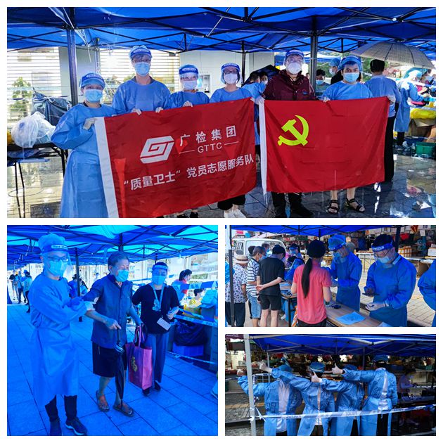党有号召,团有行动,在广州全城齐心一致全力抗疫的大局下,广州检验检测认证集团有限公司青年干部、团员纷纷请战,第一时间报名广检集团支援疫情防控志愿者突击队,摩拳擦掌、主动请缨要去社区一线支援疫情防控工作。6月1日,广检集团派出由青年党员、团员组建的青年志愿者突击队,共20名队员分两批支援海珠区江南苑和沙园核酸检测点工作。当天下午,在不期而至的风雨中,广检人坚守岗位、展现担当,那些被雨水和汗水浸湿的脸庞,无不将青春的底色磨砺出不一样的光彩。