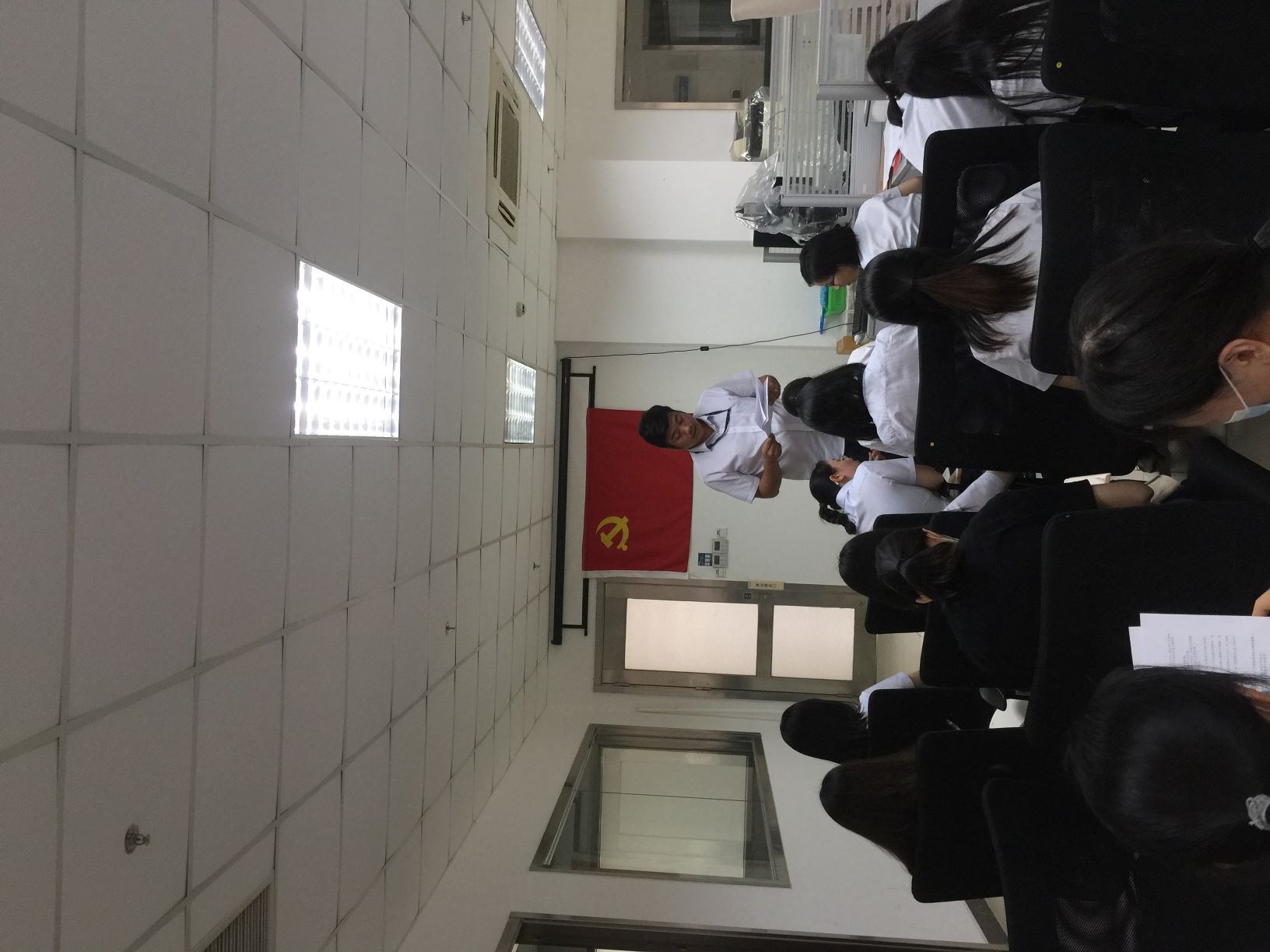 广检集团广纺第六党支部于5月26日组织召开接收预备党员大会。三名拟接收为预备党员的同志以及支部全体党员到会,会议由支部书记李小红同志主持。