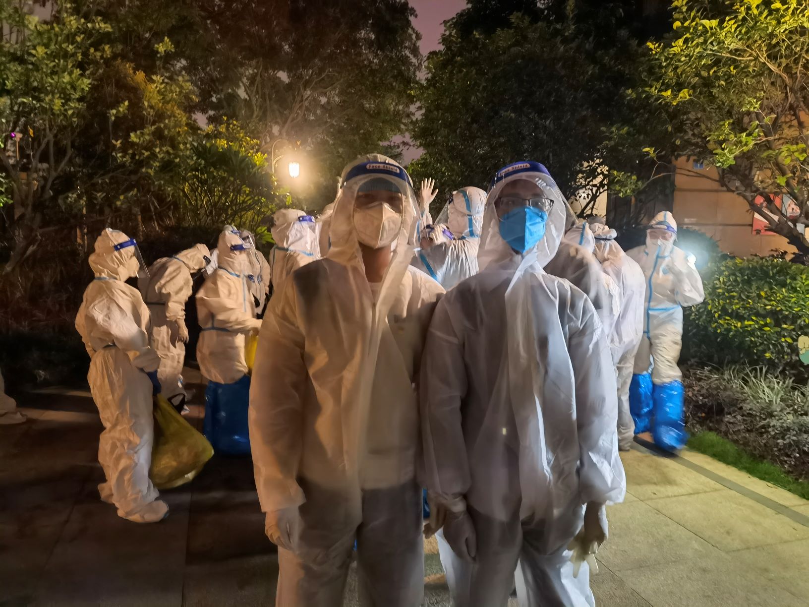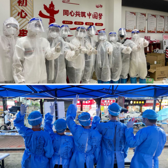 5月30日21时,接到支援疫情防控的紧急任务后,广检工程检测中心党总支快速部署,按集团统一要求集结,前往荔湾区鹤洞街支援疫情防控工作。时间紧,任务重,两位突击队队员钟学森、郭佳耿义无反顾,立刻前往目的地。在换上防护服后,开始了当晚的紧急任务,他们协助两名医生挨家挨户上门做核酸检测。晚上,很多居民已经休息,工作困难不言而喻,大家耐心地挨家挨户敲门,绝不落下一户,居民们也都十分理解和配合,为这个紧张的夜晚增添了一份信心和力量。凌晨两点,突击队结束了工作任务,在炎热的天气中,身着防护服的队员们已经浑身湿透,但大家十分开心,因为在今晚,他们守护了万家灯火。