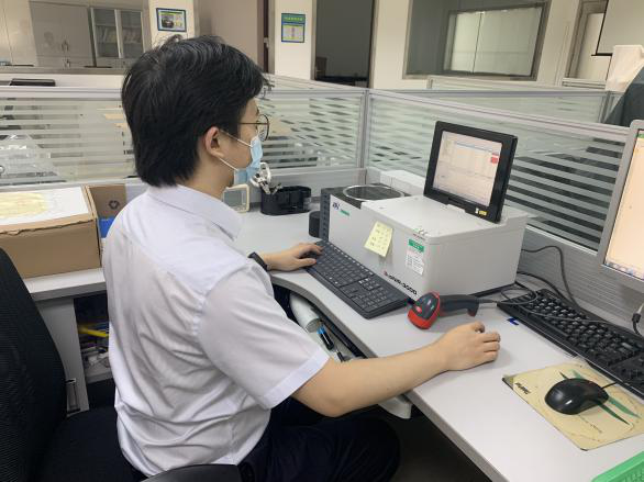 采用人工汗液的方法测定镍释放量,操作过程复杂,测试时间长;现行标准中的快速筛选法多采用能谱法,容易造成错筛漏筛。广纺自主研发镍释放量快速诊断技术,可实现快速筛查饰品中的镍含量的目的,测试周期可从8天缩短至3-5分钟,快筛准确率达90%以上,能帮助客户快速定性判定其产品是否含镍。