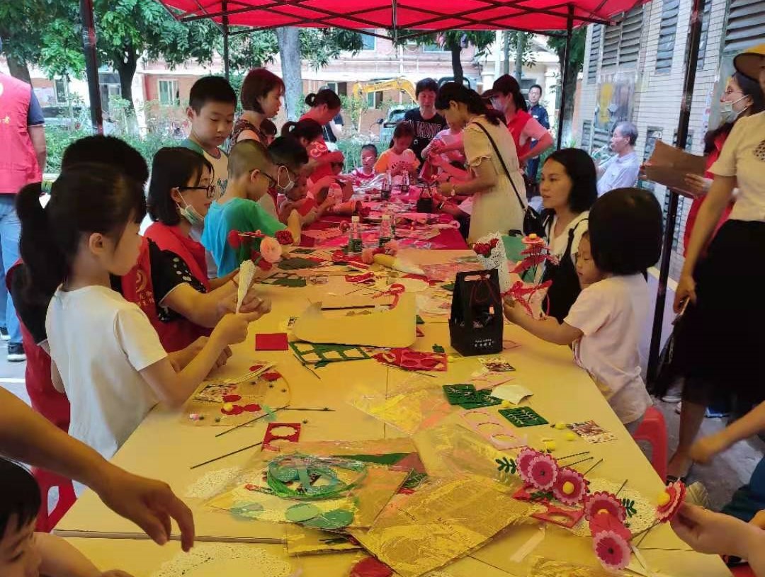 第六党支部党员曹月婵和刘海媚参加社区母亲节贺卡制作亲子志愿活动