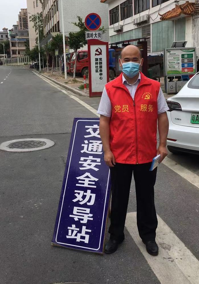 第七党支部党员王勇参加旗岭社区组织的交通劝导活动