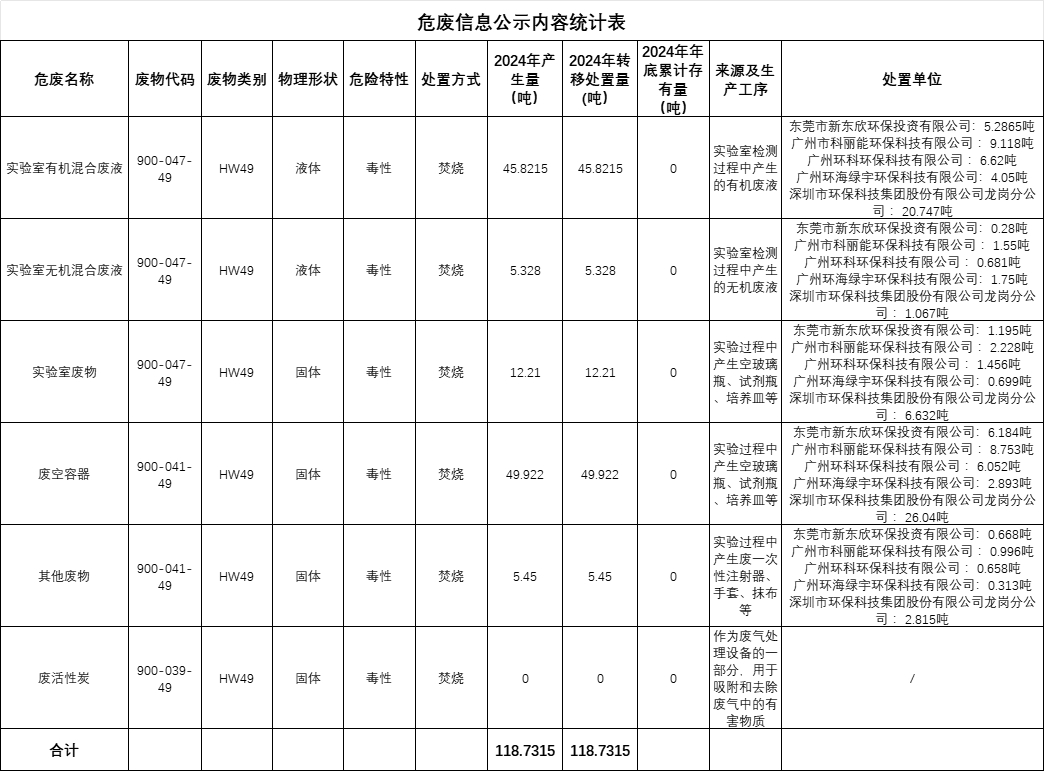 广州检验检测认证集团有限公司2024年危险废物来源及去向情况(公示)