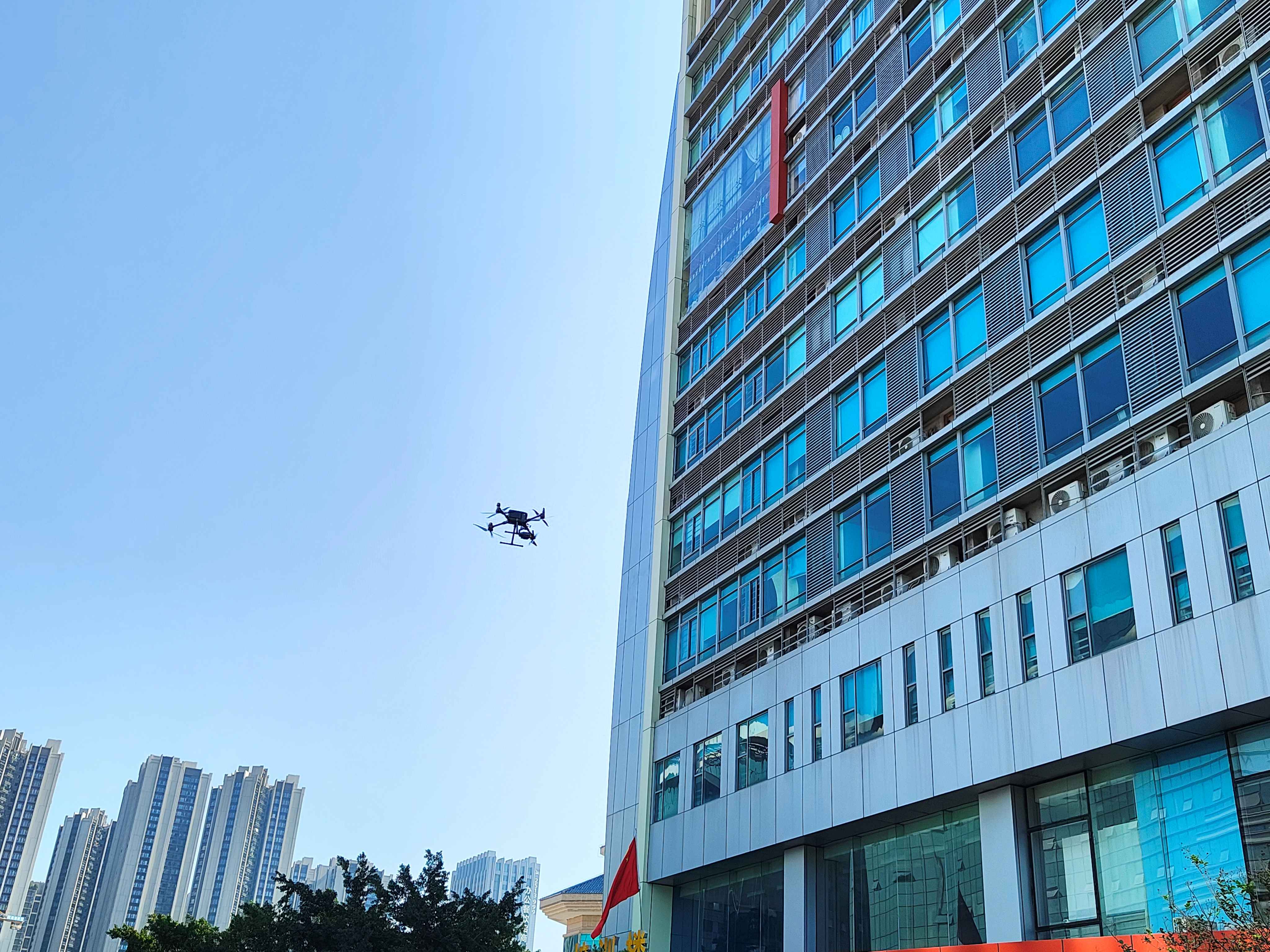 1、幕墙巡查:无人机凭借其灵活的飞行能力,轻松穿梭于建筑外立面,结合AI图像识别技术自动标注病害位置,为城市高空幕墙安全提供精准“体检报告”;