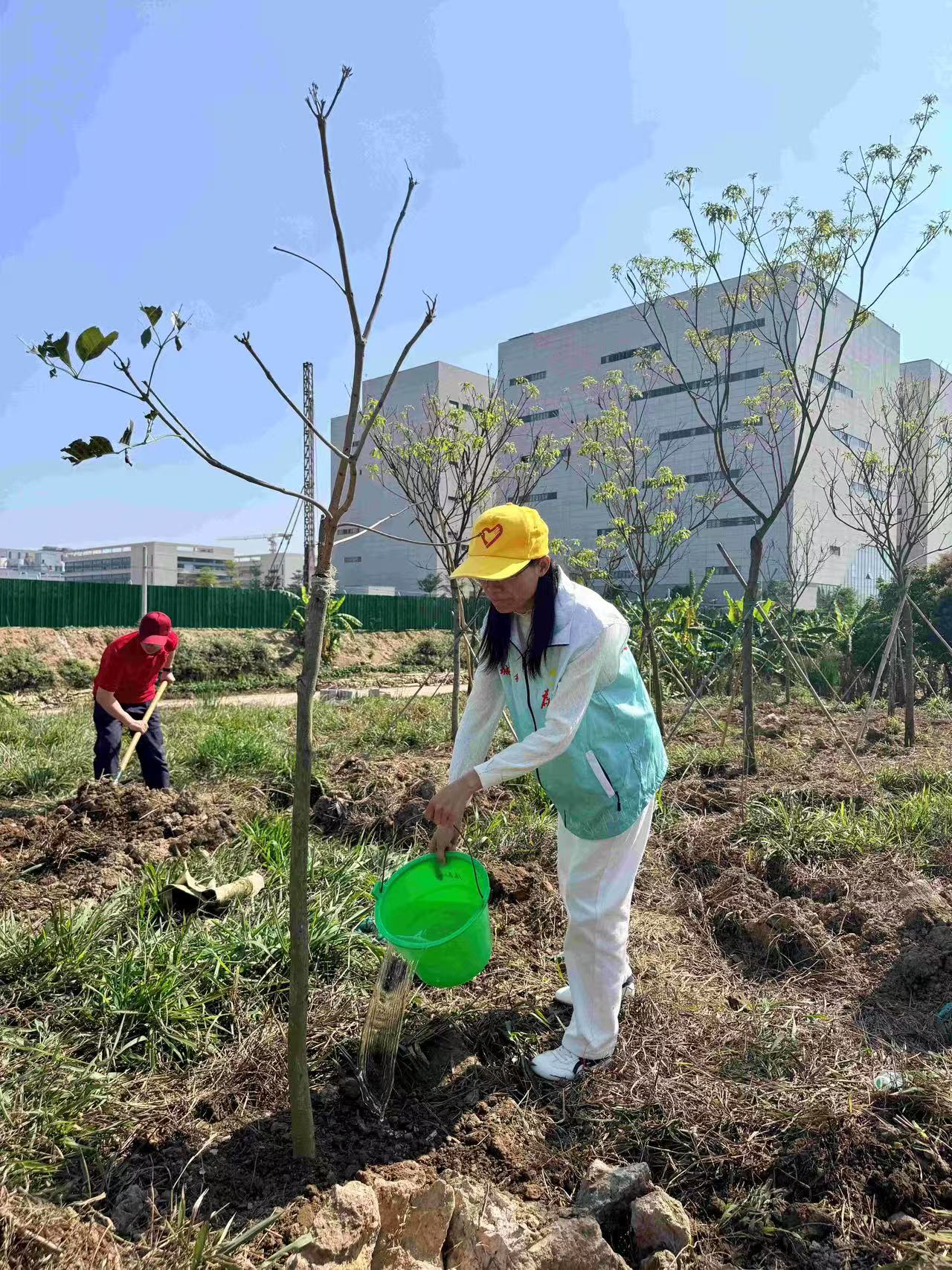 活动现场,30余名党员志愿者身着志愿马甲,手持劳动工具,分工明确、相互配合。大家热情高涨,挥锹挖土、扶正树苗、填土压实、提水浇灌,每一个环节都认真细致、有条不紊。在大家的共同努力下,一批黄花风铃木扎根沃土、挺拔而立,为乡村增添了错落有致的生态景致。植树结束后,志愿者们又立即前往横沥镇党建示范林——紫霞荆风林,开展苗木浇灌、杂草清理等养护工作,坚持种植与管护并重,用实际行动守护树苗成长,切实把绿化管护工作落到实处。