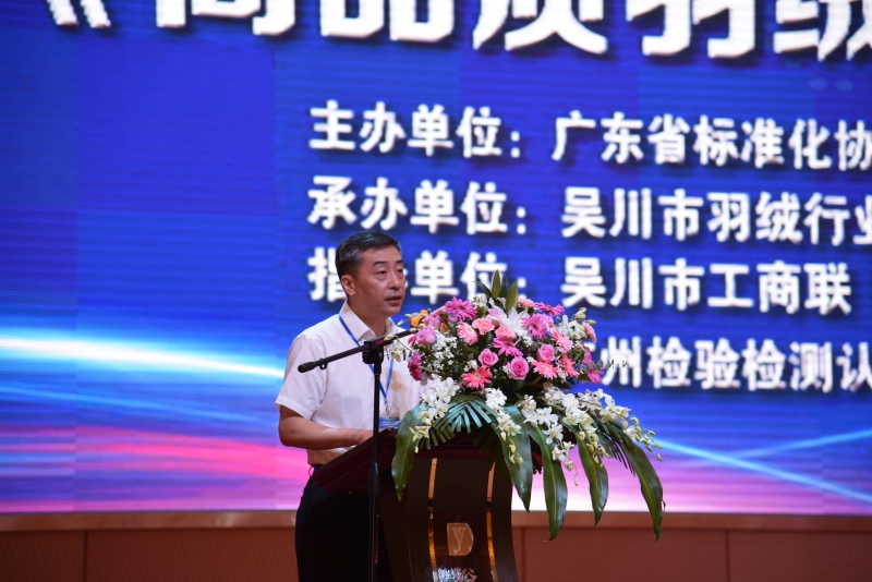 8月29日,“羽绒产品质量提升高峰论坛暨《高品质羽绒制品》团体标准发布会”在吴川成功举办,广检集团副总经理潘伟出席会议并致辞。
