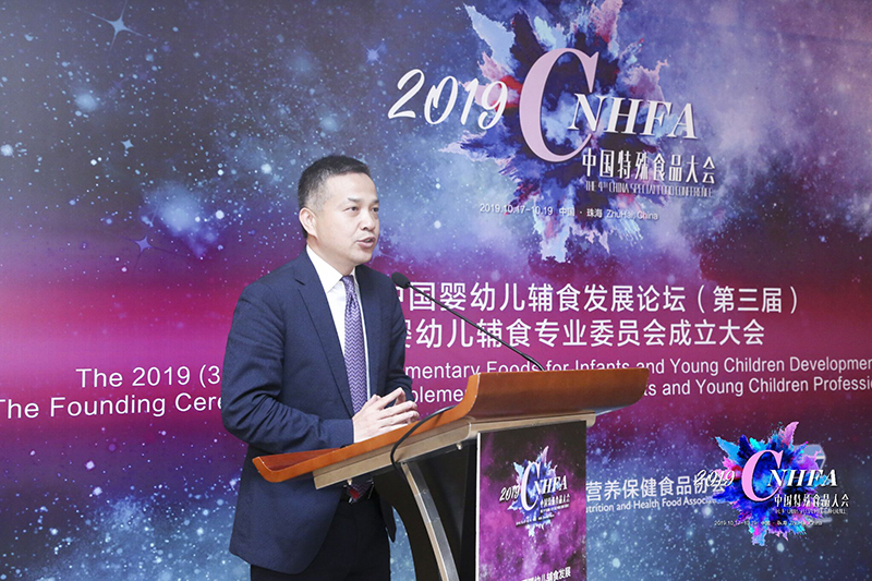 2019年10月19日,由中国营养保健食品协会、广州检验检测认证集团有限公司共同主办的2019中国婴幼儿辅食发展论坛(第三届)暨婴幼儿辅食专业委员会成立大会在广东省珠海市顺利举行。本次会议邀请了国家市场监督管理总局食品生产安全监督管理司崔伟副处长、国家加工食品质量检验中心(广东)副主任蔡玮红、华西医学院附属第二医院教授毛萌、国家食品安全风险评估中心研究员屈鹏峰、中国食品发酵工业研究院教授级高级工程师涂顺明、中国疾病预防控制中心营养与健康所研究员荫士安、雀巢(中国)有限公司、江西人之初营养科技股份有限公司、阳光麦田贸易(深圳)有限公司、亨氏(中国)投资有限公司等约110人参加。会议围绕政策法规、婴辅食品生产、婴幼儿成长、婴辅食品行业未来等主题进行了剖析与讨论。
