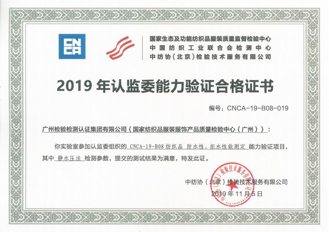 此次能力验证的顺利通过,充分反映了广检集团广纺院在功能纺织产品检测方面保持着国内先进的技术能力,能为客户提供精准可靠高质量的检测服务。