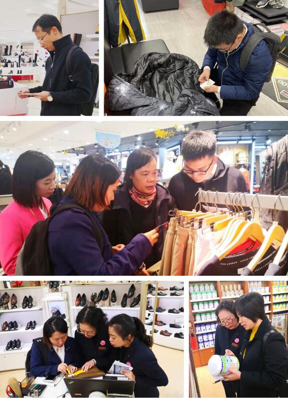 广检集团工作小组在友谊商店和天河城百货工作人员的协助下,针对商场内各大品牌货架产品现场抽检,通过细致地观察,对巡检过程中发现的一些问题进行现场指导并详细讲解,使商场和商家工作人员都有了清晰的认知,以便接下来更加及时完善地落实质量管理工作。