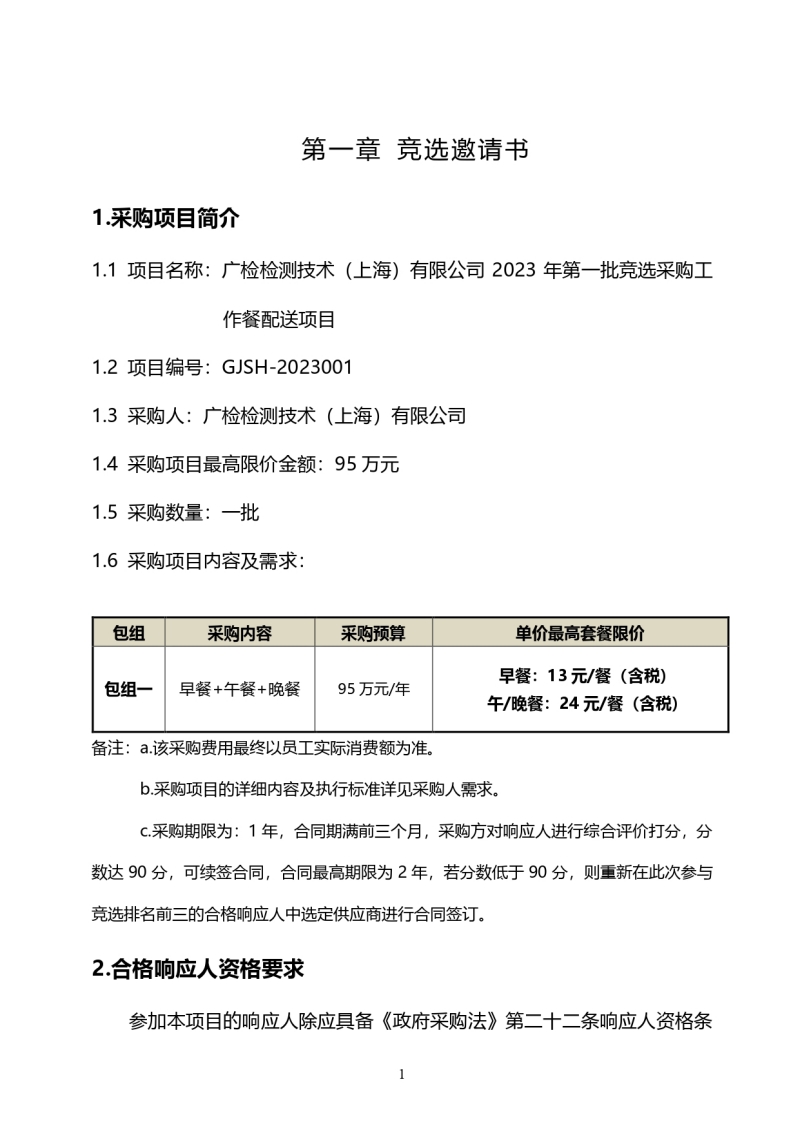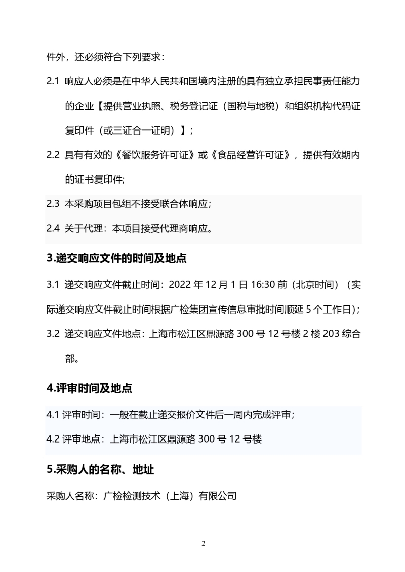 广检检测技术(上海)有限公司2023年第一批竞选采购工作餐配送项目邀请公告
