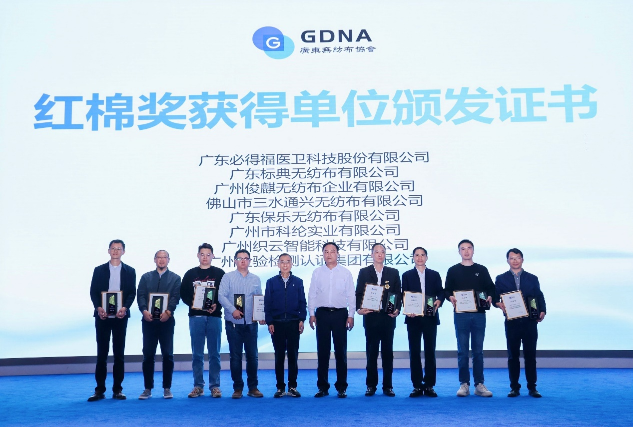 促进产业优化升级,推动绿色可持续发展,是我国非织造布行业高质量发展的必由之路。近年来广检集团紧跟行业前沿,聚焦行业热点、痛点,在空气过滤、卫生用品检测及认证等领域深入研究,研制国家标准、行业标准、团体标准十余项,颁发可生物降解/可冲散认证证书超过100张,在本次大会上荣获广东无纺布行业第四届技术创新红棉奖,同时集团正高级工程师朱锐钿被聘为协会技术服务团队专家。