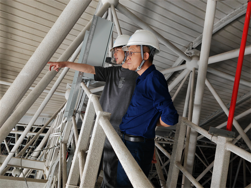 吴福成深入项目现场,听取了关于该项目履约情况、安全质量把控、监测系统、经营效益等方面的汇报,实地察看了屋盖钢网架、Y字柱等关键构件的技术特点、监测仪器设备状态、整体防护措施以及系统运营等要素,详细了解项目创新、报告出具、交付结算等情况,对项目团队在推进项目建设过程中付出的努力和取得的阶段性佳绩给予充分肯定。