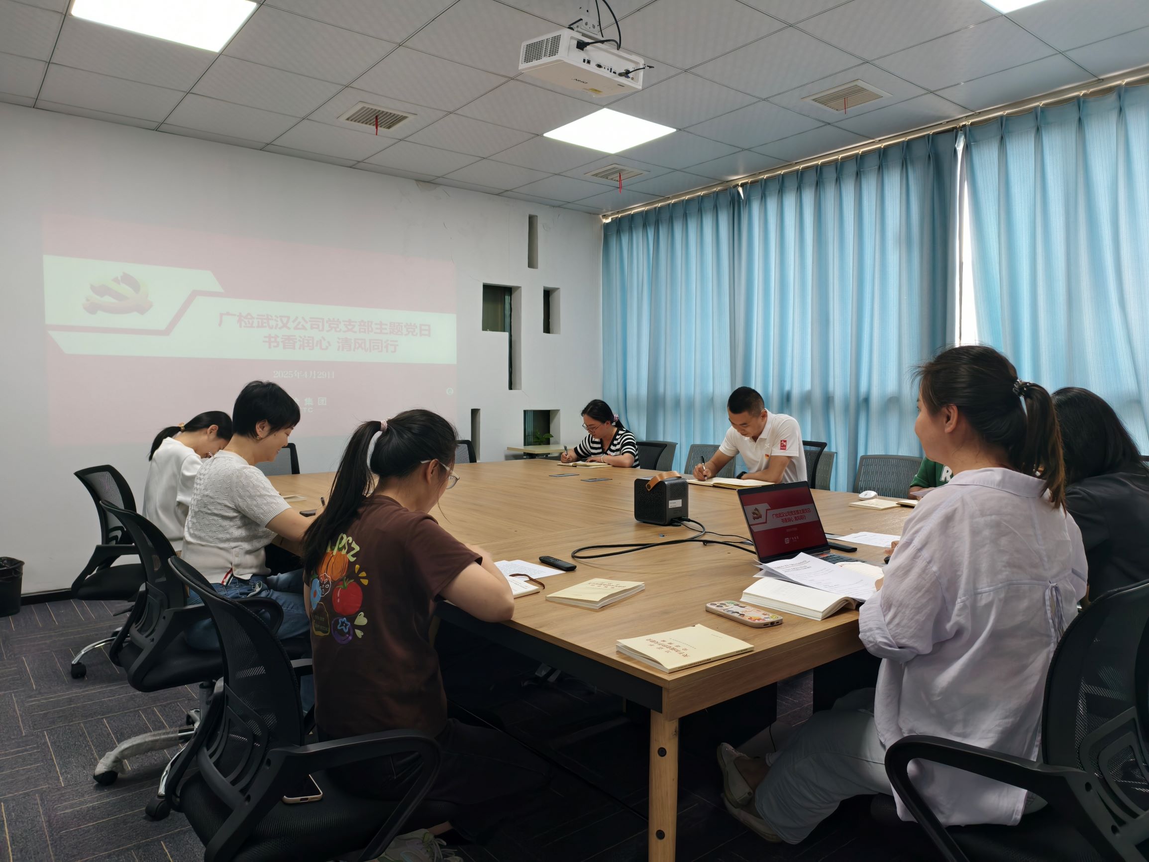 为深入贯彻落实中央八项规定精神,巩固拓展作风建设成果,推动主题教育走深走实,值四月“世界读书日”之际,广检武汉党支部以“书香润心 清风同行”为主题,开展了一场形式新颖、内涵丰富的主题党日活动,全体党员干部积极参与,在书香与清风中凝聚奋进力量。