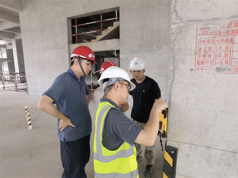 在实操培训环节,花都区质监站相关工作人员与广检工程检测中心花都分公司专业技术人员带领参会人员前往花都区妇女儿童医院项目现场,现场指导相关人员使用检测仪器。