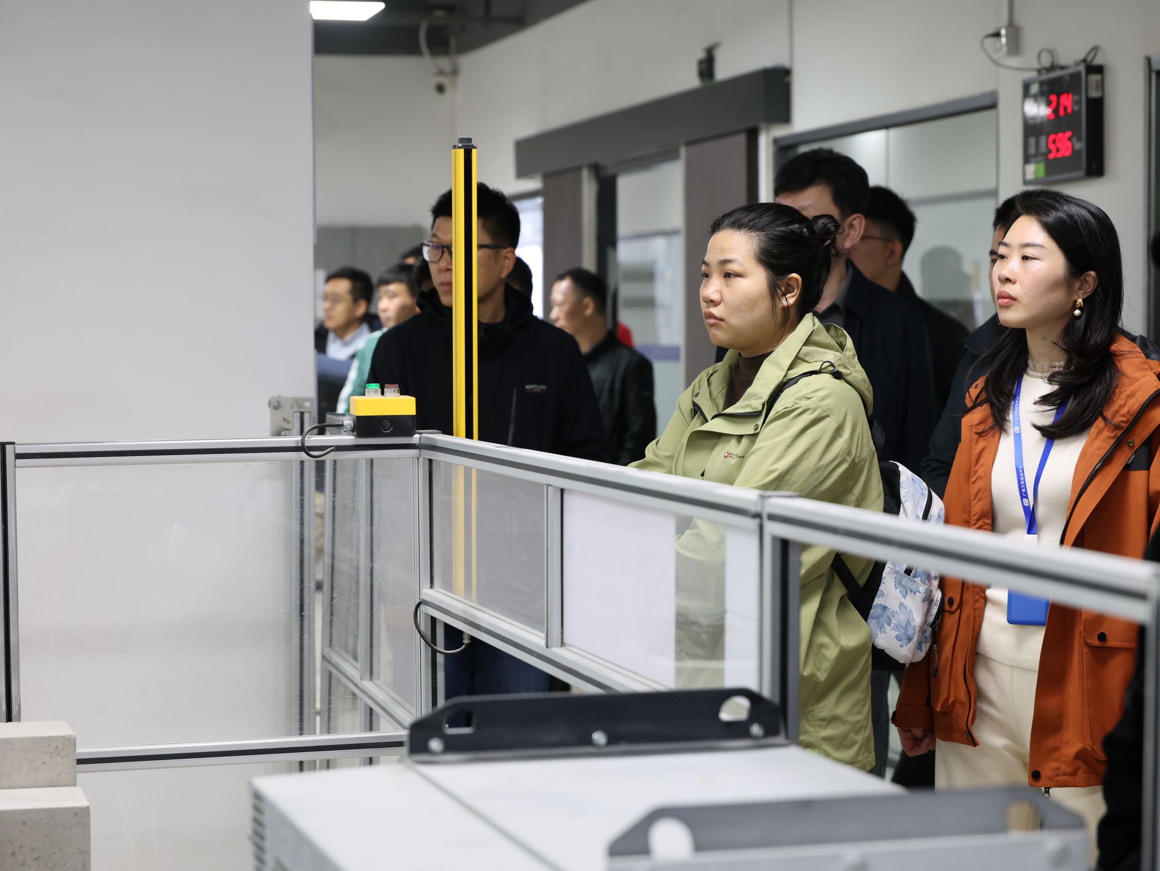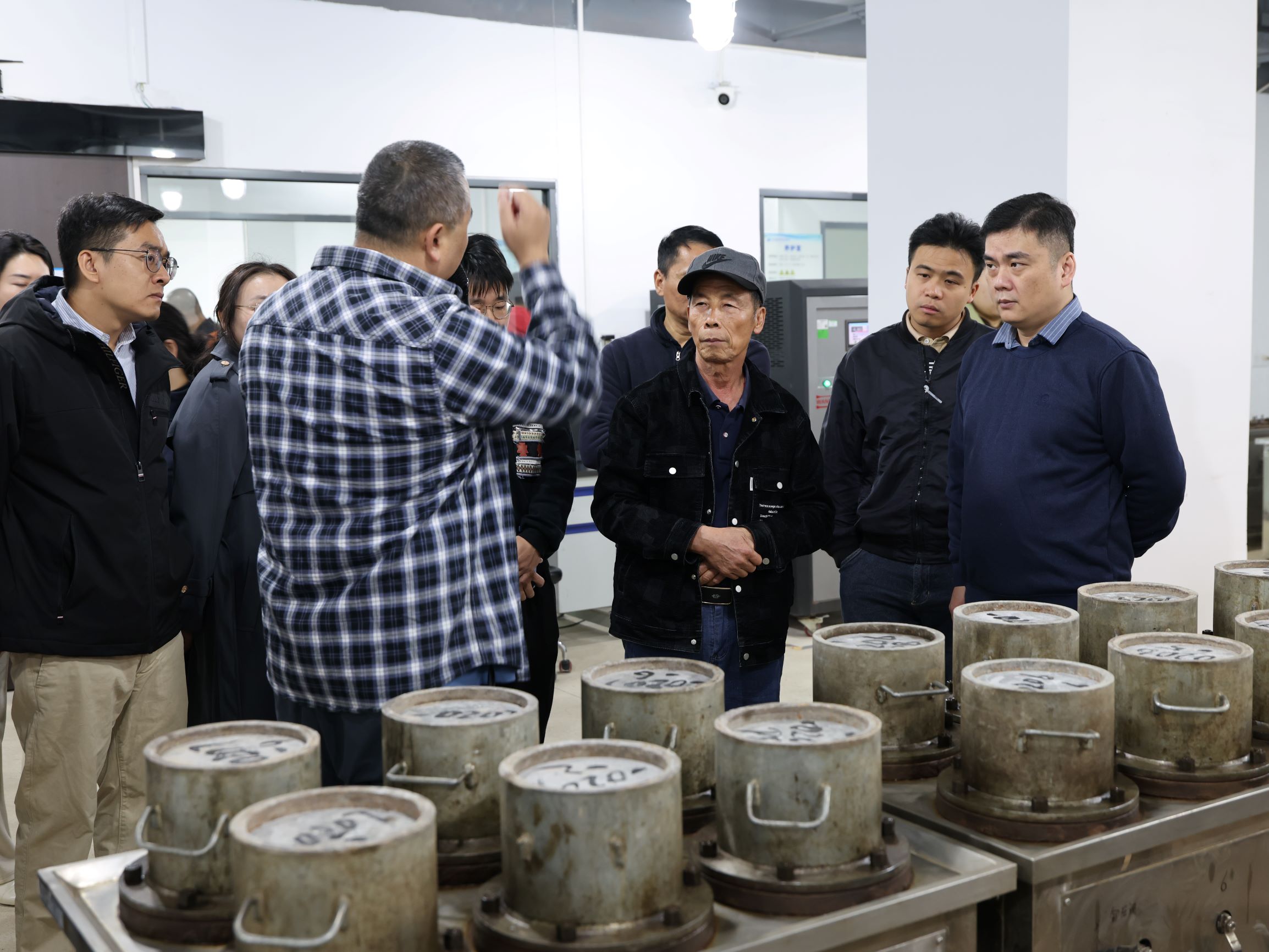 随后,监督组移步智能化实验室,观摩混凝土试块、混凝土抗渗、芯样抗压、混凝土抗压、钢筋弯曲、钢筋抗拉等检测项目的实际操作。工作人员结合实际检测场景,详细讲解各类设备的原理与应用价值,同步演示检测数据的采集、处理与分析流程。一系列专业操作让参观人员对建设工程检测的关键技术环节有了具象化认知。