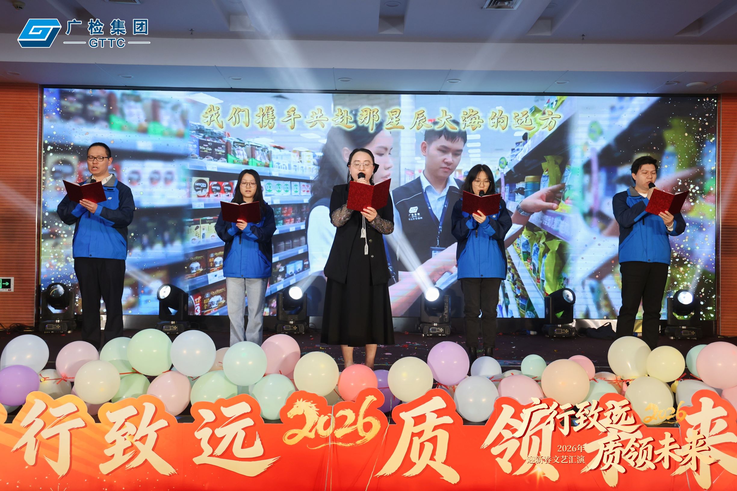 会后,“广行致远 质领未来”2026年迎新春文艺汇演随即举行。各部门精心编排的12个节目依次登台,舞蹈《新的一年Bang Bang Bang》活力开篇,粤语歌曲《气势如虹》唱出拼搏豪情,情景剧《业务员的蜕变》《如意团圆年夜饭》贴近工作生活、引人共鸣,影子剧《“马”足干劲》创意十足,广质原创大合唱《星驰・广质》更是点燃全场热情,充分展现了广质人多才多艺、积极向上的精神风貌。整场活动掌声不断、笑语盈盈,既传递了新春祝福,更凝聚了团队力量。