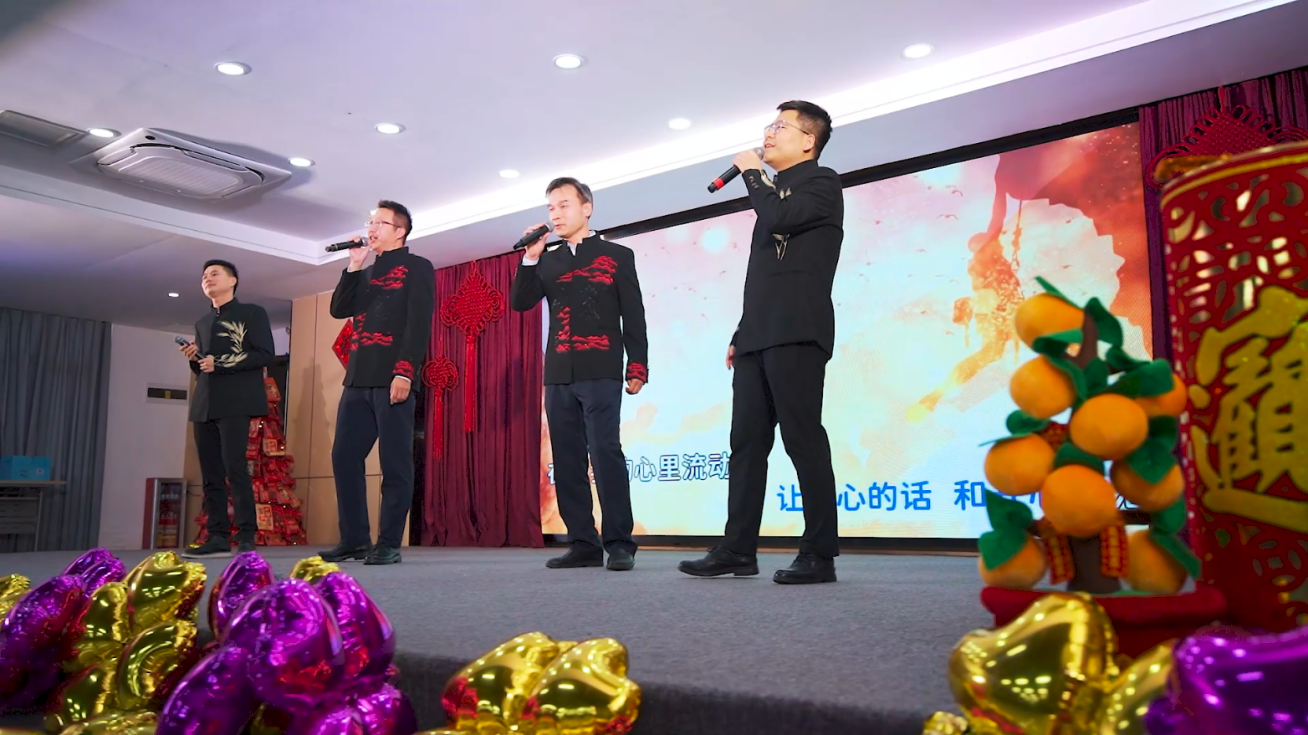 迎新春联欢会尾声,集团分管领导与公司领导班子登台献唱,向全体干部职工致以新春问候和美好祝福。歌声温暖、情谊真挚,将现场气氛推向高潮。在热烈持久的掌声中,本次新春联欢会圆满落下帷幕。