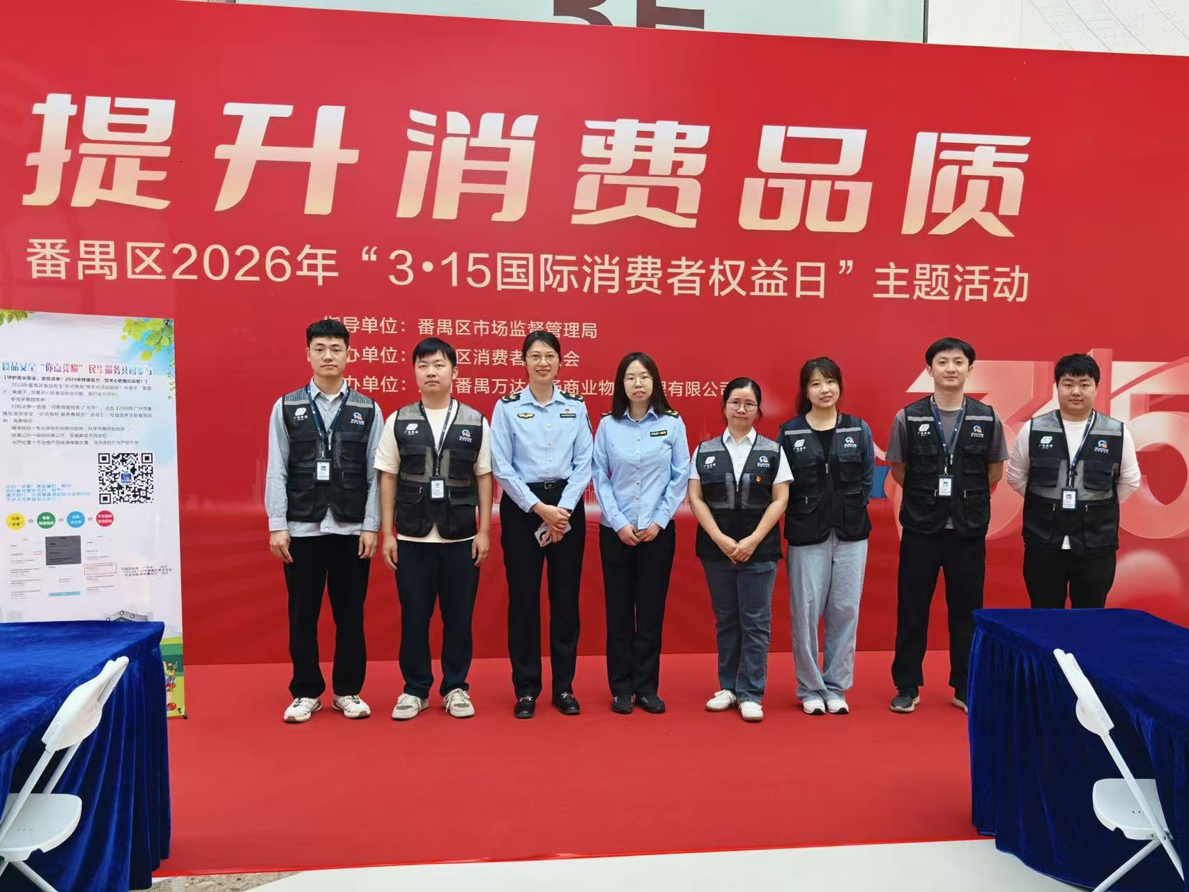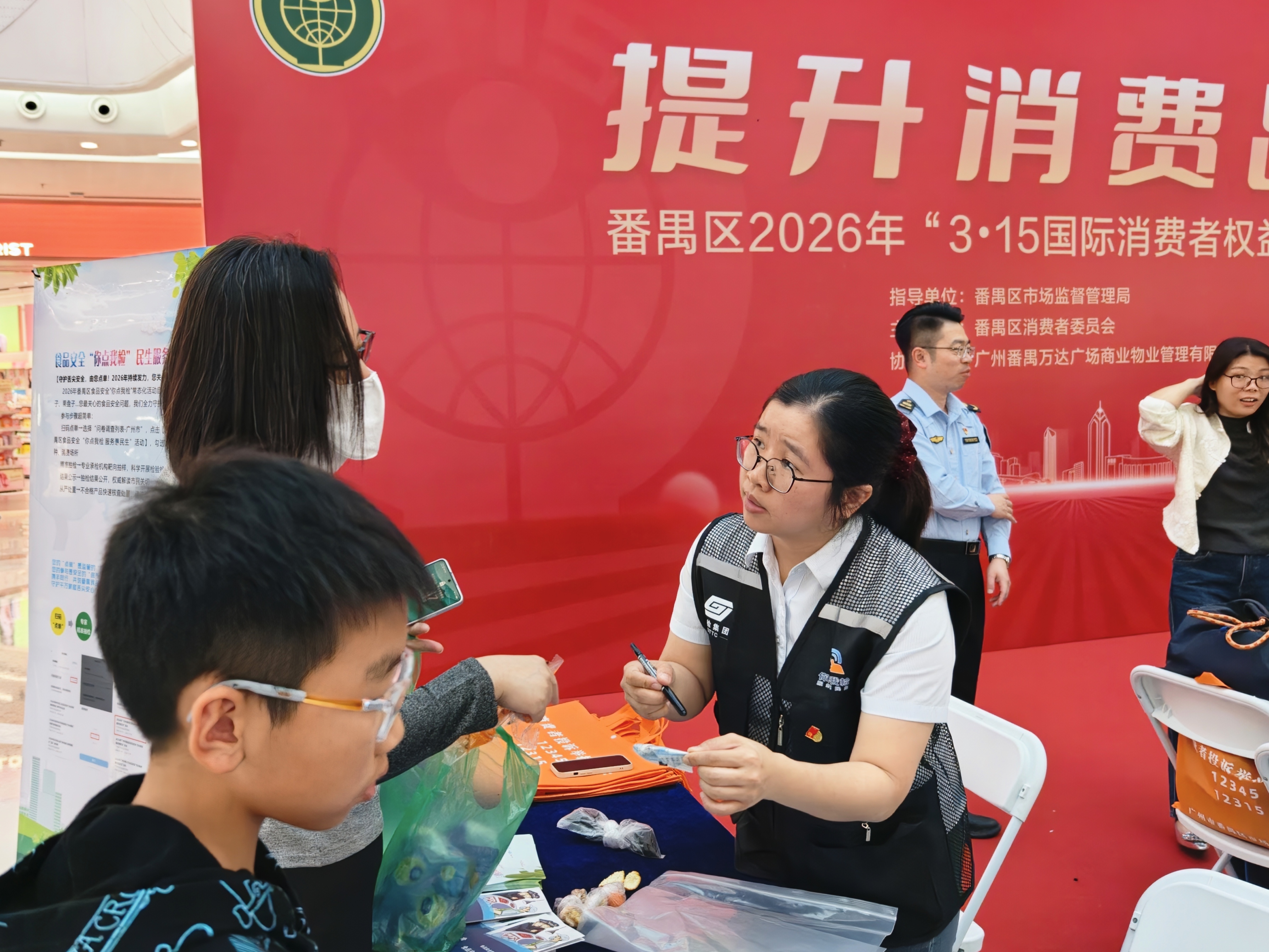 在第44个“3·15”国际消费者权益日来临之际,广检集团广质院携手广州市多个区市场监督管理局,开展以“提升消费品质”为主题的3·15现场系列活动,活动覆盖越秀区中华广场、番禺区万达广场、南沙区寰宇城、南沙电影院门前广场以及从化区荟悦晟商业广场等多个核心区域,以实际行动彰显国企担当,守护市民消费安全。