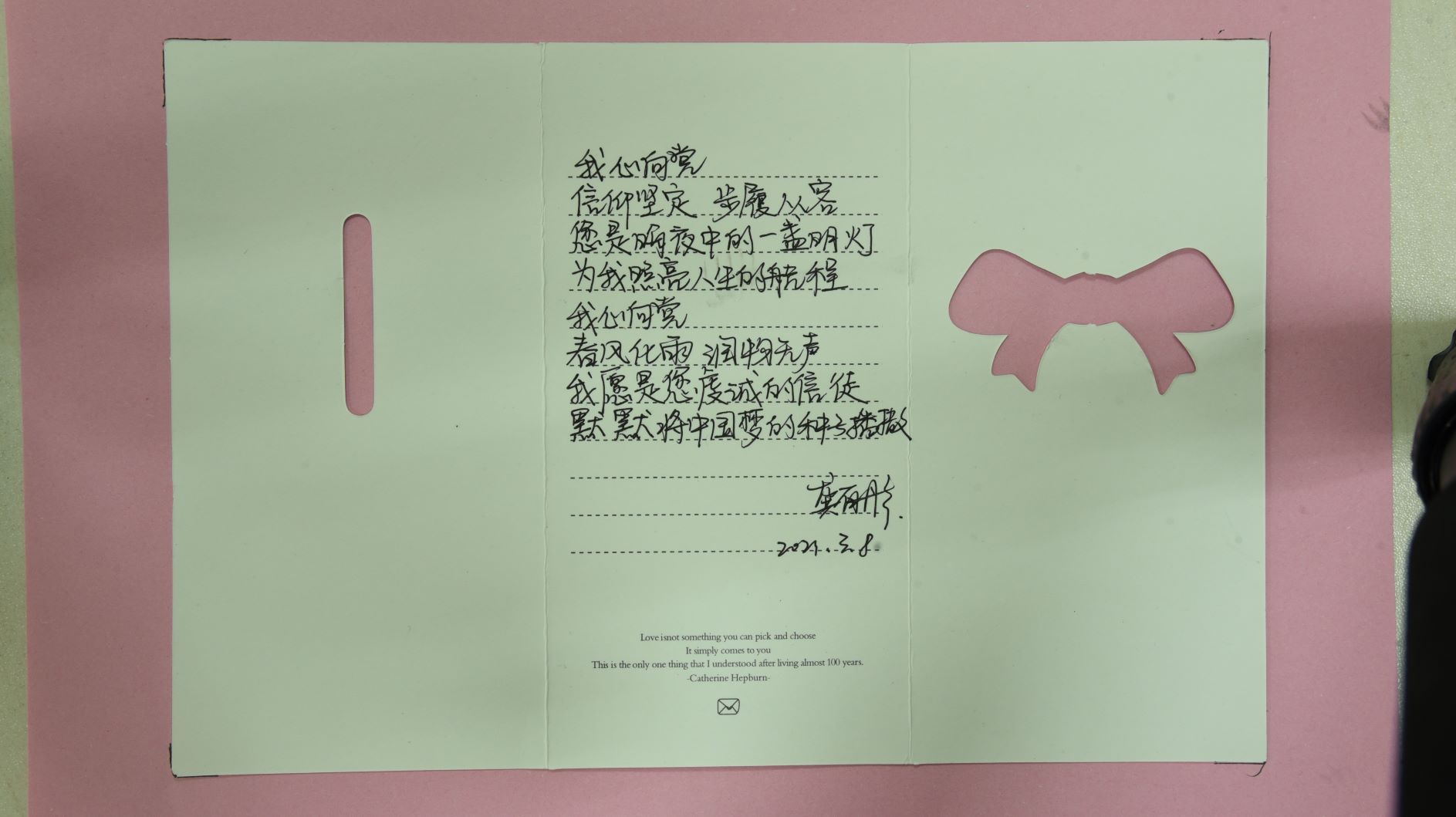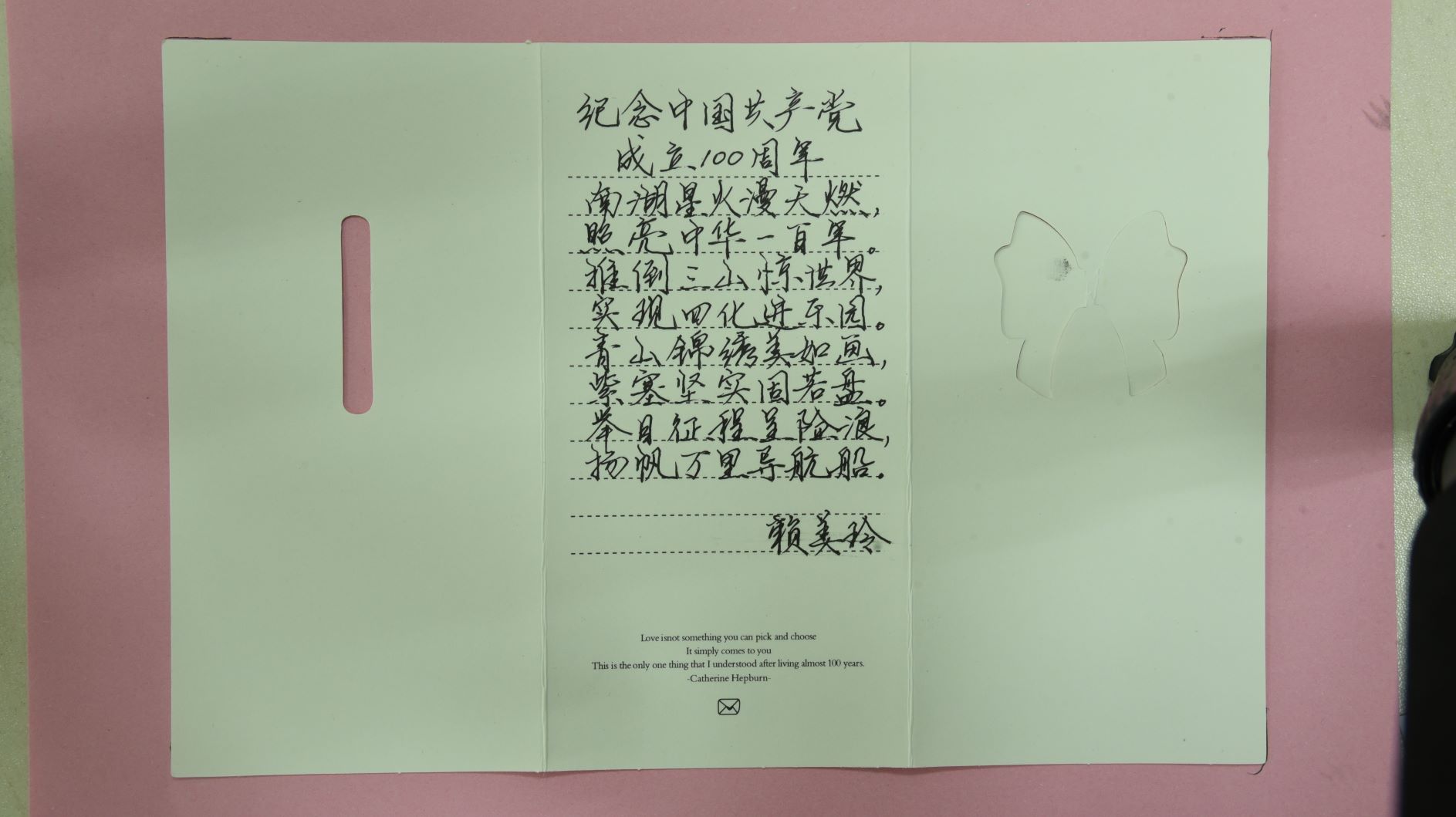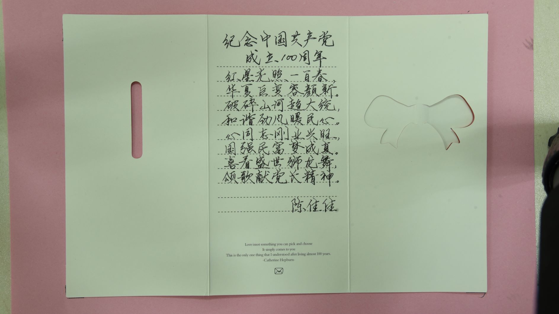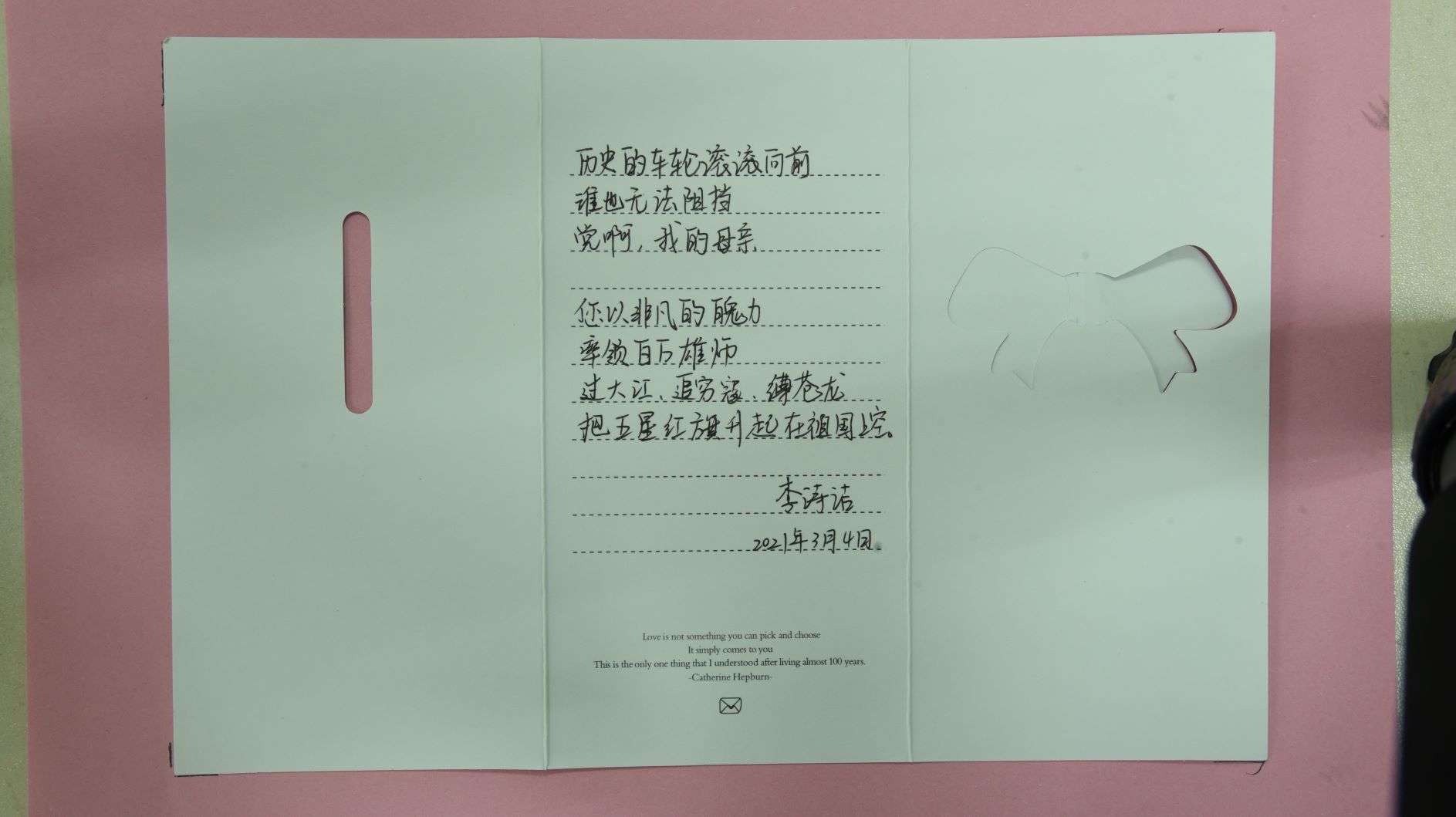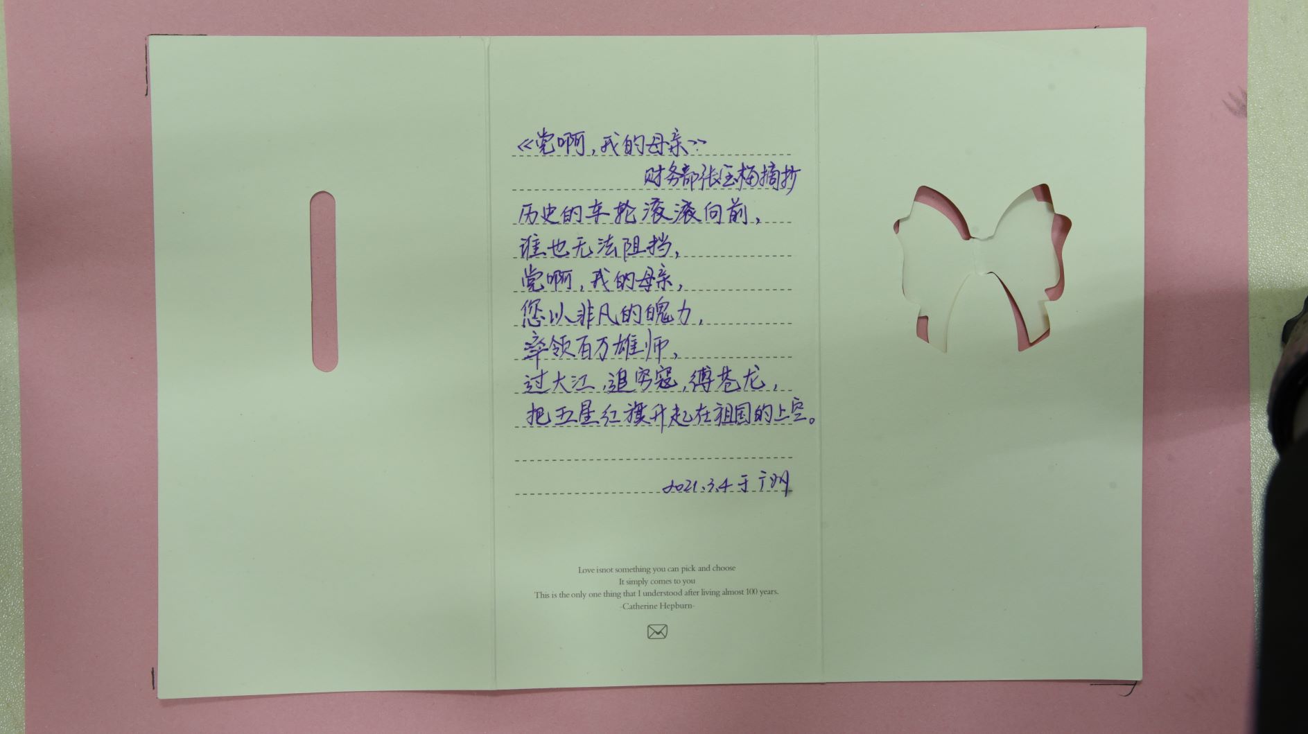 此次“诗献党 歌颂党 心向党”主题诗歌征集活动收获满满,广检女职工们踊跃参与,把对党和国家的歌颂与热爱之情转化为亲笔书写的贺卡作品。以诗作礼,浓情满溢,祝广大女职工节日快乐!