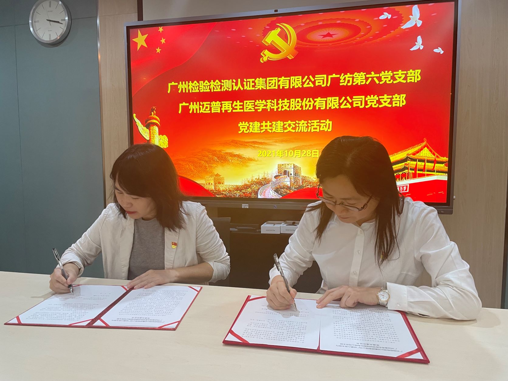 最后,广纺第六党支部和广州迈普再生医学科技股份有限公司党支部现场签订了党建共建协议书。王向钦表示,希望双方在党建和业务中保持紧密联系,在共建中推动合作,在合作中达到双赢,促进双方互利共赢。