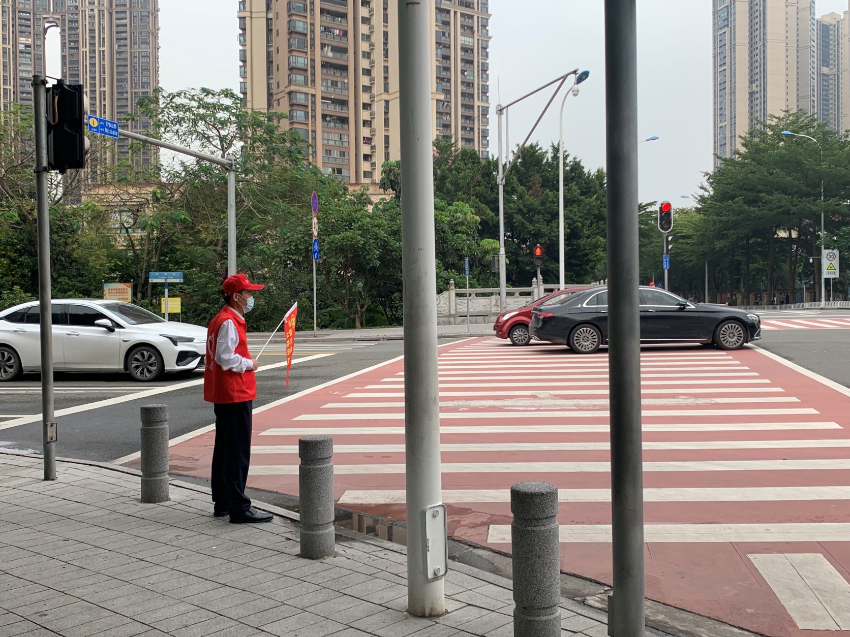 广检集团广纺党员志愿服务队的党员志愿者们用自己的一言一行传递文明,用耐心和热情温暖群众,用实际行动传播了文明交通理念,成为马路上一道靓丽的风景线,为创建文明城市、共建共享美丽广州奉献力量。