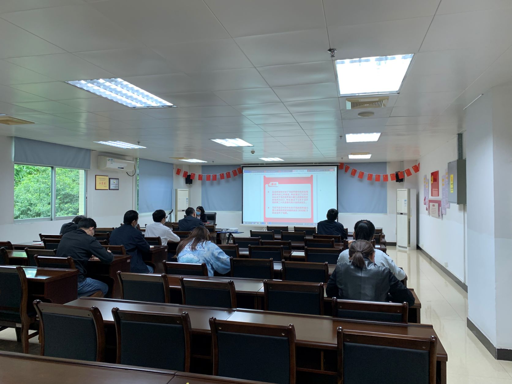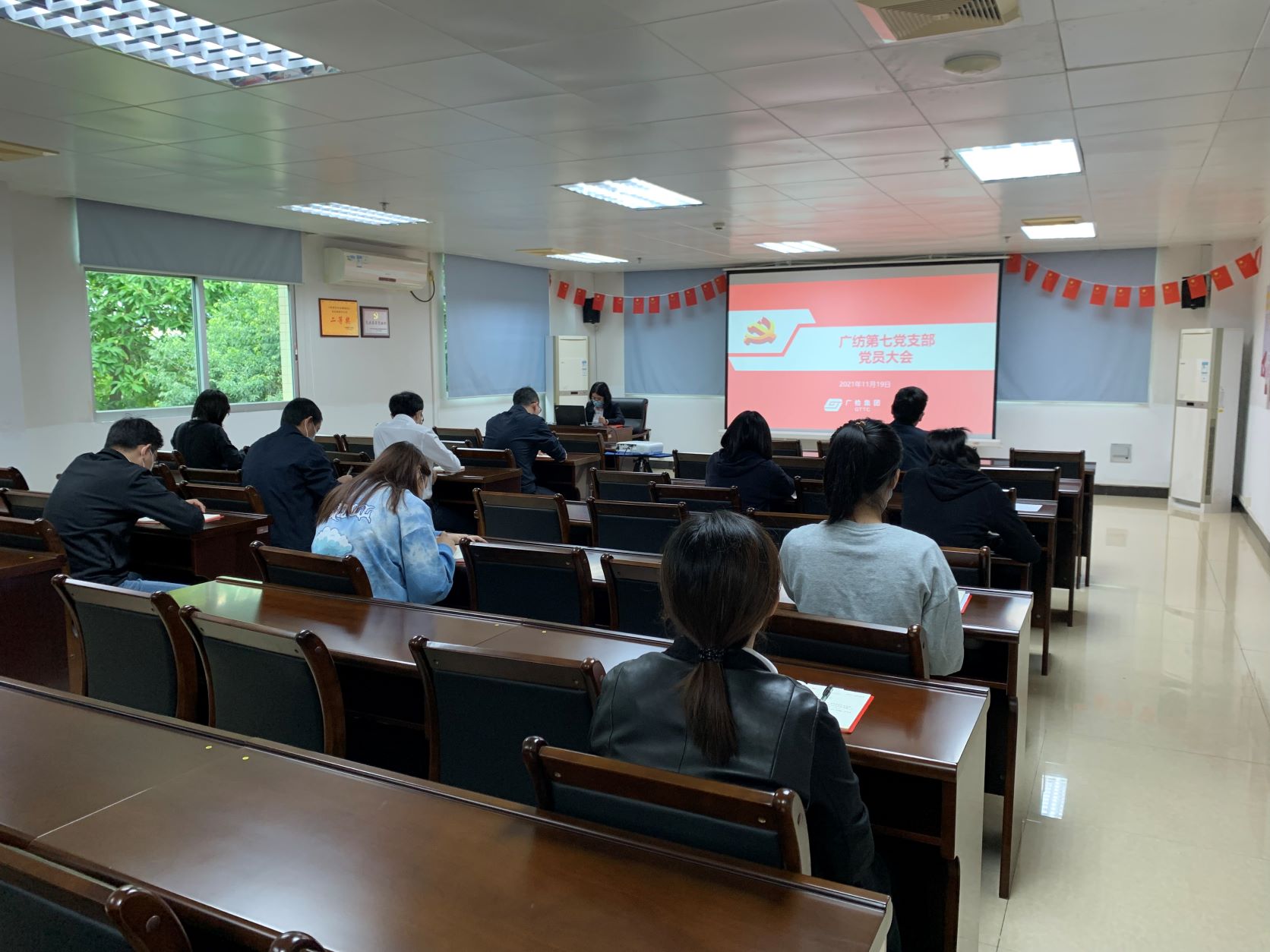 为深入学习贯彻党的十九届六中全会精神,近日,广检集团广纺第七党支部在花都基地党员活动室开展了“凝力量,促发展”全体党员大会活动。广纺第七党支部全体党员参加学习。