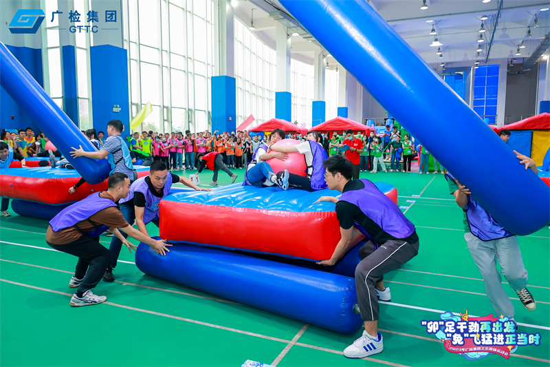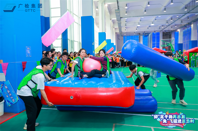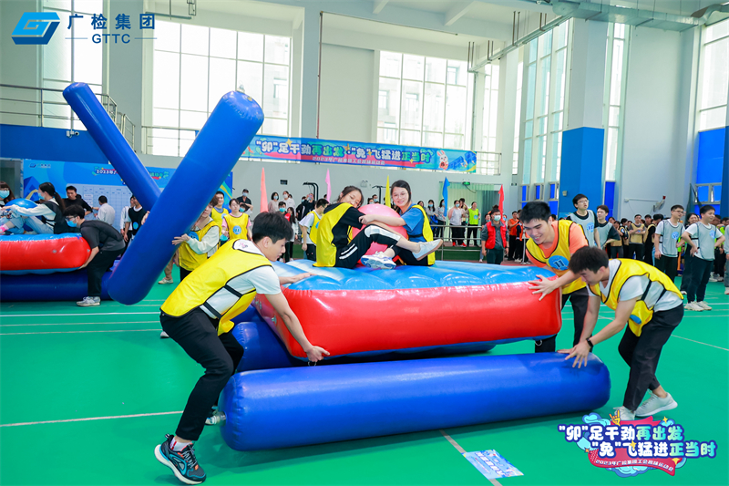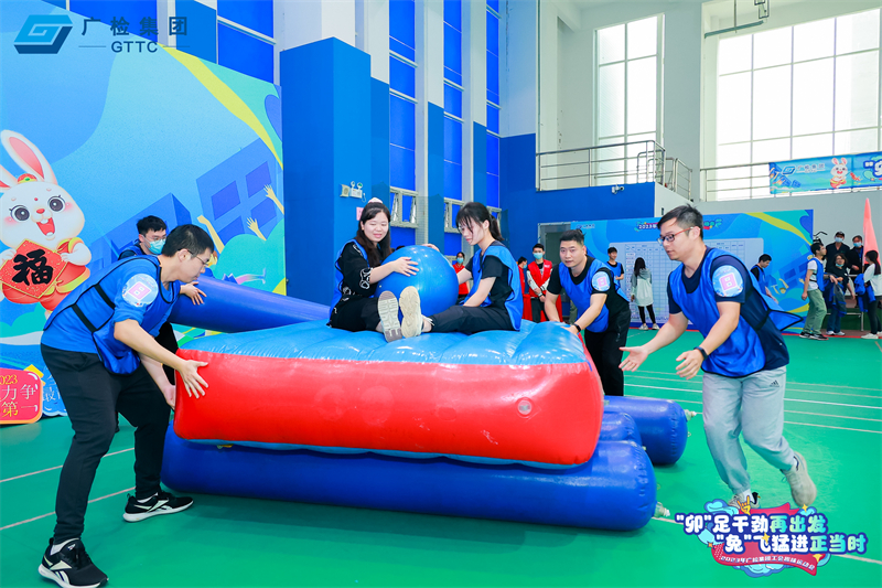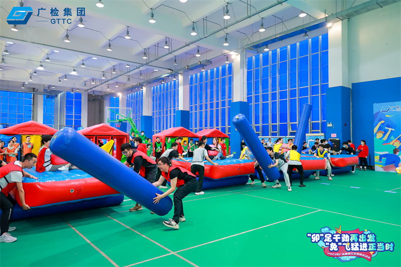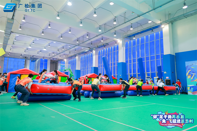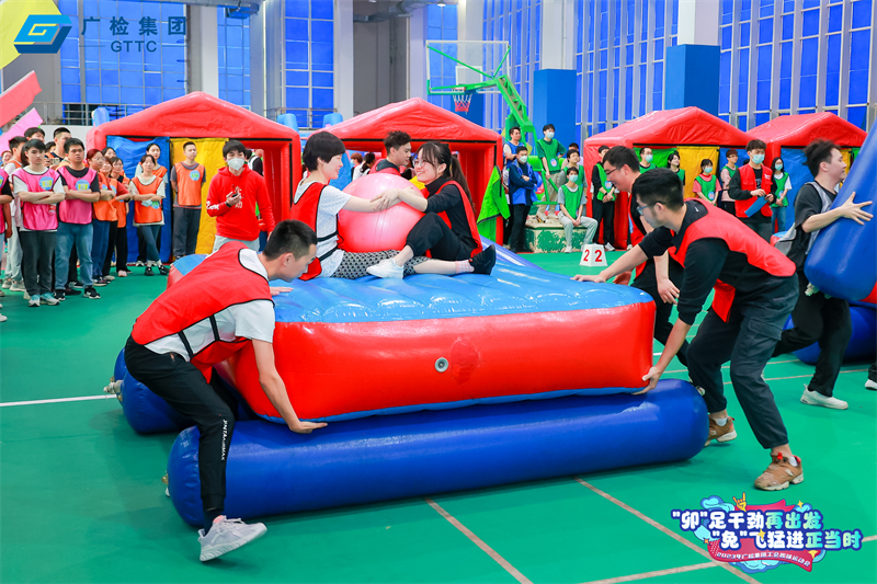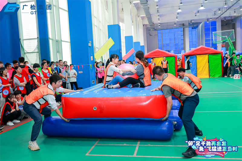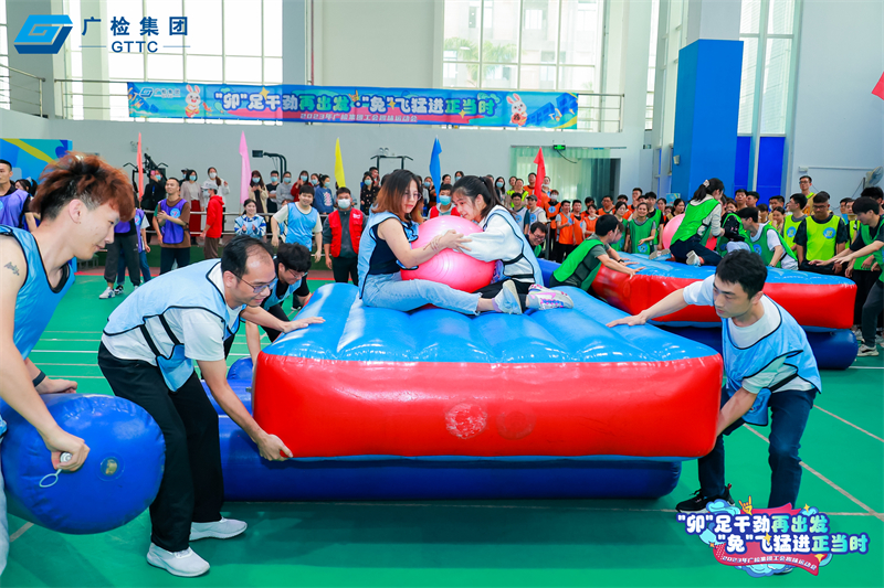 来自广检集团各所属机构共16支队伍参加本次趣味运动会,参赛的近300名职工从繁忙的检验任务里、紧盯的电脑前、紧张的工作状态中暂时脱身出来,在运动中放松身心、释放能量、提振信心。赛场中,共设有“猛龙过江”、“铁甲战车”、“俄罗斯方块”、“狼与兔子”、“智勇大冲关”等5个趣味运动比赛项目,锻炼与娱乐并重,健康和趣味同行,整个赛场气氛热烈,充满趣味,欢呼声、加油声、欢笑声不断,热闹非凡。