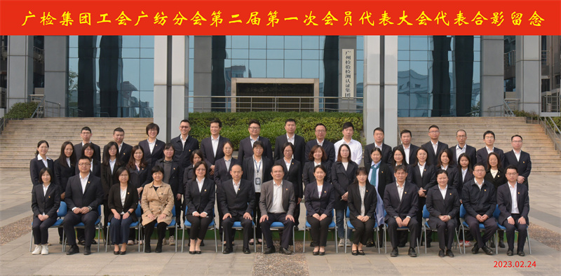 2023年2月24日上午,广州检验检测认证集团有限公司工会广纺分会第二届第一次会员代表大会在番禺园区综合楼一楼报告厅顺利召开。广检集团党委副书记、董事、工会主席王世基出席会议并讲话。