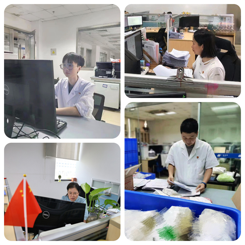 奋战六月攻坚战中,我们的党员同志带头冲。一个党员就是一面旗帜,涌现了许多像许丽珠、周海练、黄灿斌等同志,他们时刻铭记党员身份,主动扛起责任,面对堆积如山的样品,不辞辛苦,以饱满的热情投入到实验中,以实事求是的态度对待每一份检验报告,诠释使命担当。