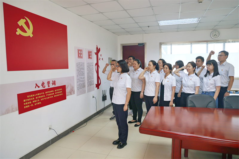 在支部书记付佳的带领下,全体党员面对党旗,庄严宣誓,重温入党誓词。“我志愿加入中国共产党,拥护党的纲领,遵守党的章程……”面对鲜红的党旗,党员同志们高举紧握的拳头庄严宣誓,重温自己对党忠诚的誓言。通过开展重温入党誓词,教育党员时刻牢记入党誓言,自觉遵守党的章程,终身践行入党誓词,把入党时的追求和现在的思想实际对照起来,始终坚定跟党走的信念。