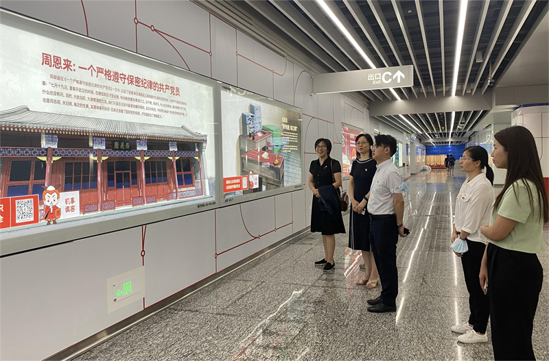 龙潭地铁站是广州建成的全国首个地铁站保密普法示范基地。活动当天,党员们参观了“密仔普法”展区及“保密法”“木棉树”“鲁班锁”“古代保密手段”等沉浸式互动打卡点,还通过鲜活的案例深入了解了保密工作的有关内容,具有很强的针对性及警示教育作用。