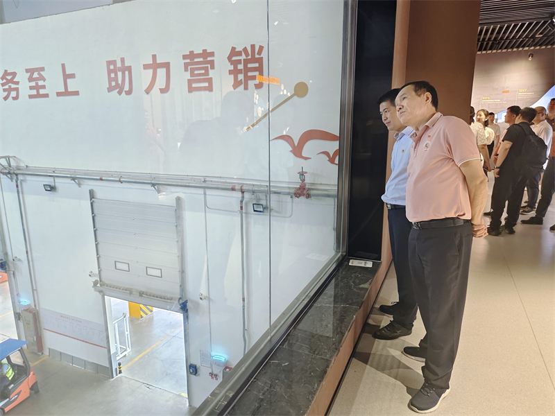 活动第二站是风行乳业的石滩乳品加工基地。参加活动的同志参观了加工基地的生产流水线、包装车间、自动化立体仓库以及加工基地的自建实验室,调研风行乳业在食品安全和生产管理自动化方面的建设思路和发展方向。