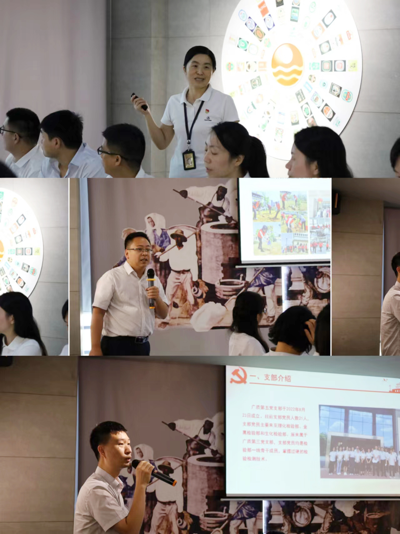 首先集中学习了习近平总书记在广东考察时的重要讲话,重点学习了关于广东全面深化改革、扩大高水平对外开放、提升科技自立自强能力、建设现代化产业体系的重要指示精神。随后,珠江啤酒管理三党支部书记吕丹分享了“聚三力 酿至纯”党建品牌创建经验和党建与生产、技术、研发融合促进的“三色”工作法。广技公司党支部书记邓成亮介绍了广技公司在实验室服务方面的能力,分享了“党建+引领检验检测上游产业技术创新创业”的实践经验。广质第五党支部书记邱志超分享了广检集团酒类检测实验室情况及党建引领科研能力提升项目成果。