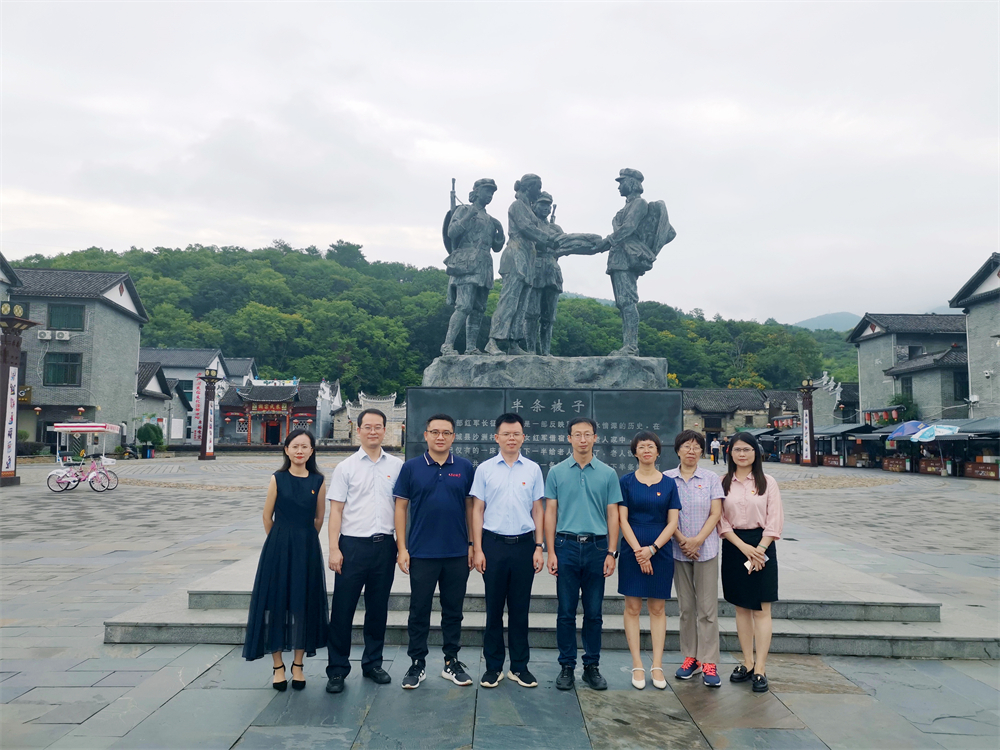 2023年8月22日,广检集团广纺院副院长/广纺公司副总经理黄永钦同志带领广纺第一党支部党员前往湖南省郴州市汝城县沙洲村开展党建共建活动。汝城县人民政府副县长邓后勤,广东省家纺家居行业协会常务副会长兼秘书长洪泽芳、副秘书长李玉婷,湖南梦洁沙洲情家纺有限公司总经理彭鹏、梦洁床品研究院院长刘辉等参加了本次共建活动。