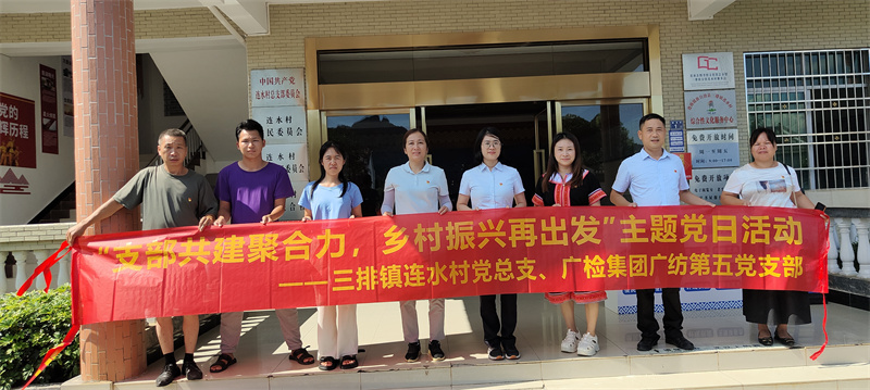 为深入贯彻落实习近平总书记关于乡村振兴的重要讲话精神,促进组织资源向基层集聚,不断增强党的政治领导力、思想引领力、群众组织力、社会号召力,扎实推动乡村振兴驻镇帮镇扶村工作,广检集团广纺第五党支部与三排镇连水村党总支开展党建共建活动。