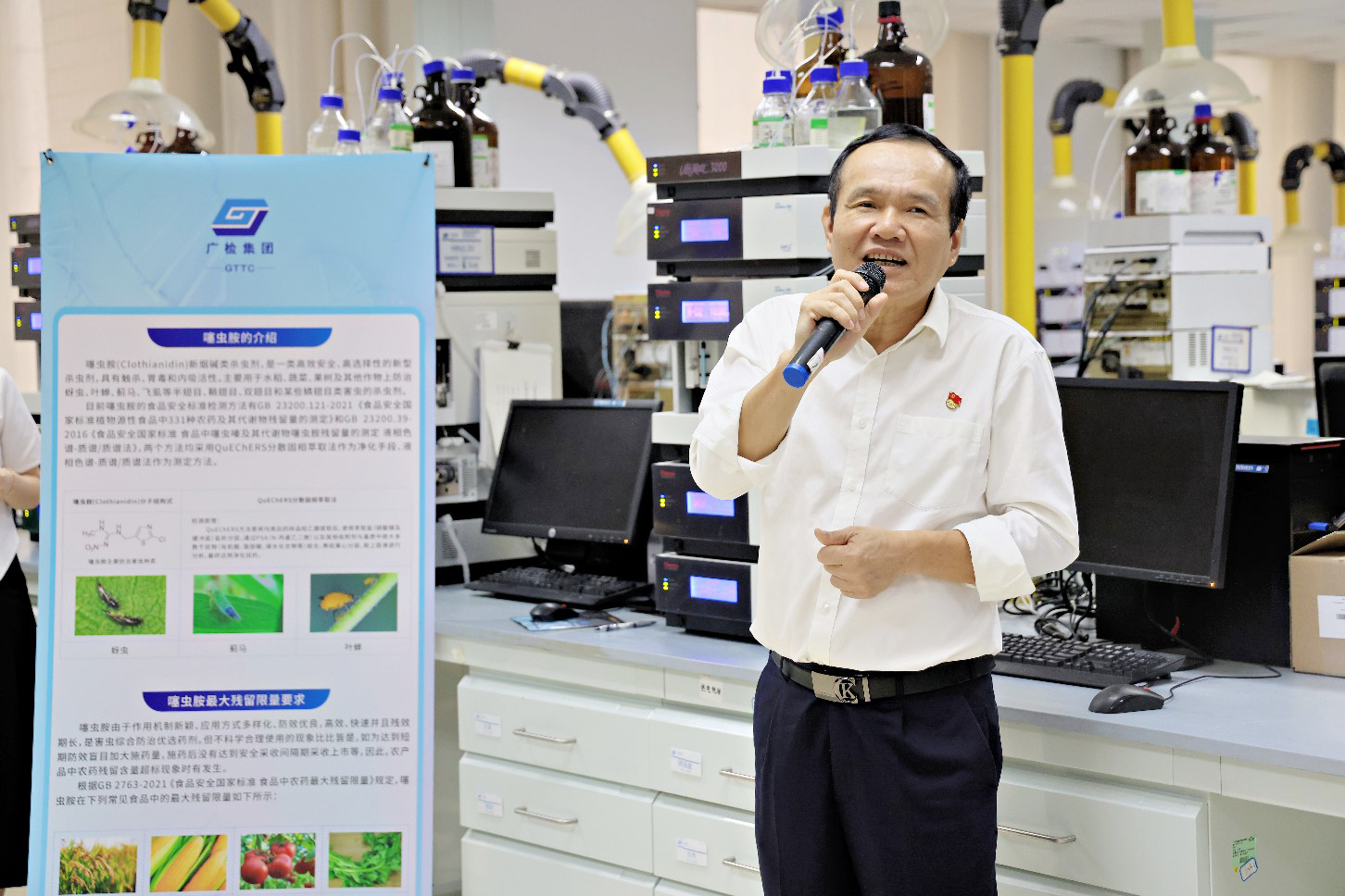 比赛现场,来自广质院、广科院和穗粮公司的26名选手齐聚一堂,同台竞技,比技能,展风采。本次竞赛选取“测定果蔬中的噻虫胺含量”进行比拼,噻虫胺是一种新烟碱类低毒杀虫剂,长期摄入噻虫胺超标的食品,会对人体产生蓄积危害。竞赛采用乙腈提取试样,提取液经过萃取净化,用液相色谱-质谱联用仪测量噻虫胺含量是否符合规定。