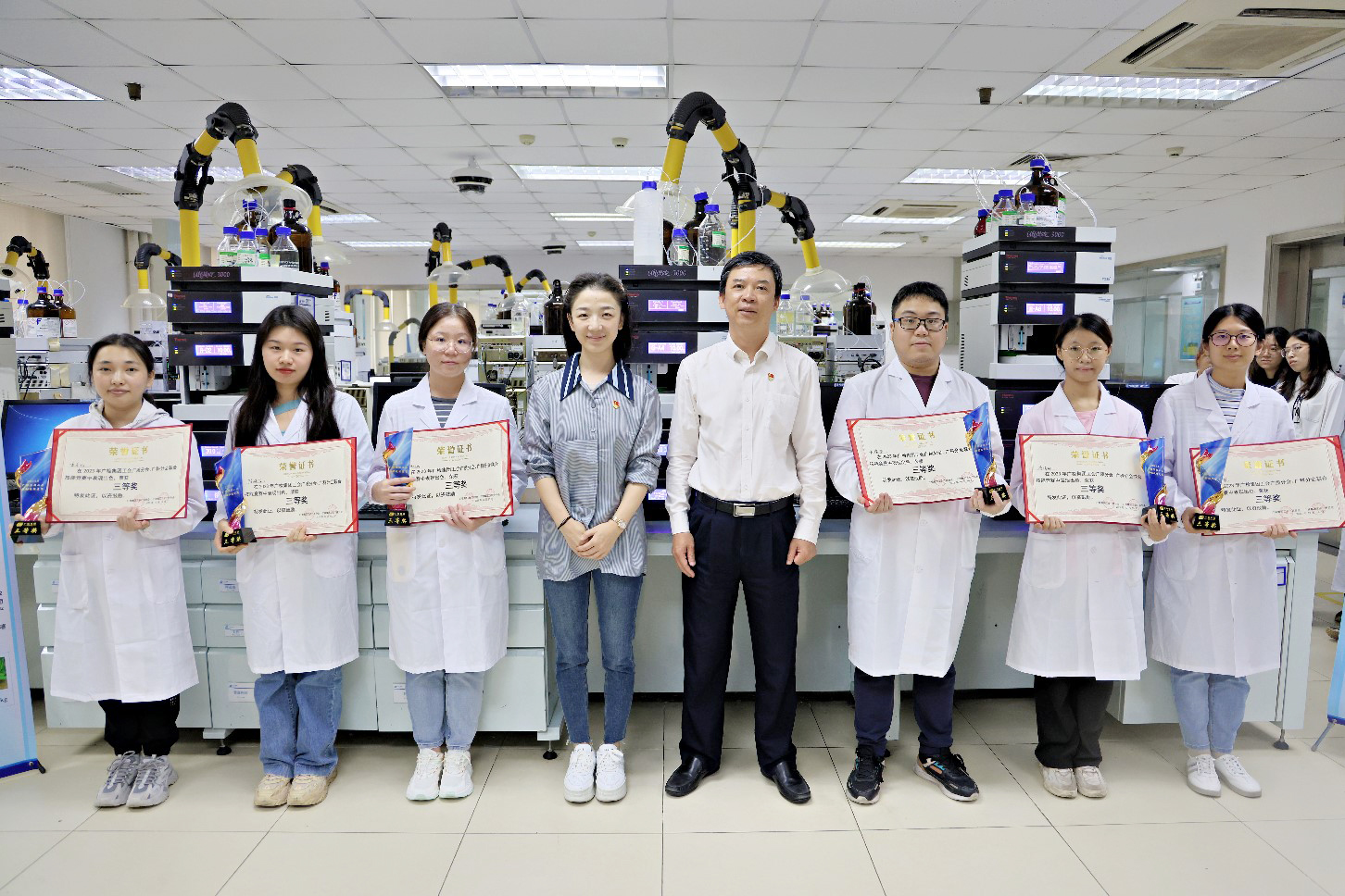 经过一天紧张有序、精彩激烈的比拼,联合竞赛圆满落幕,评委根据选手的操作规范性、技能熟练度、步骤完整度、实验用时和结果准确度等方面进行评分,评出一等奖1名,二等奖3名,三等奖6名,优秀奖7名。
